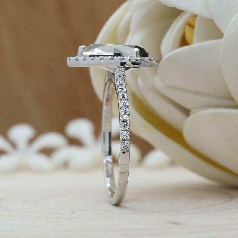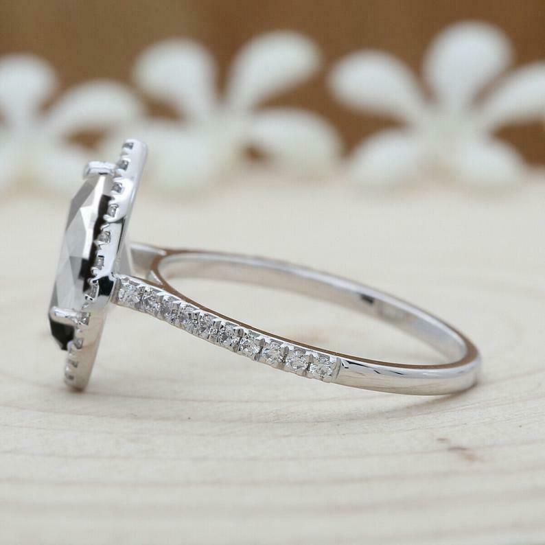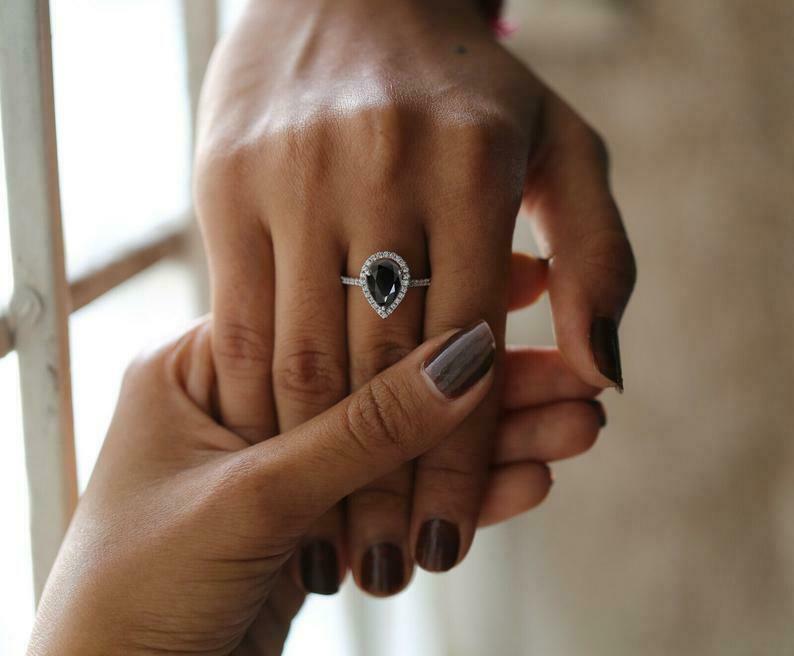 2ct Pear Cut Black Diamond Engagement Ring Halo 14k WhiteGold Finish with Accent