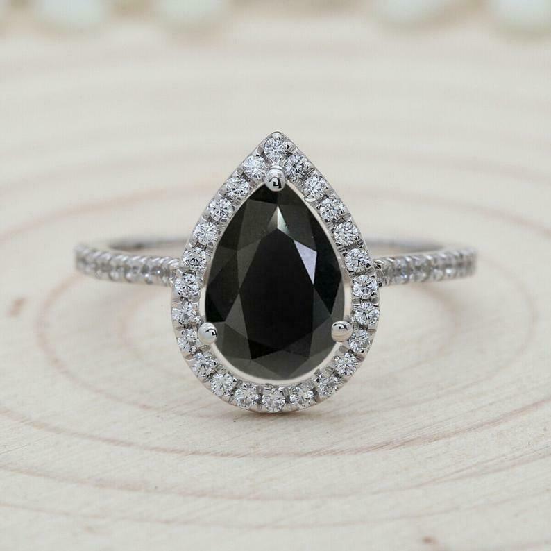 2ct Pear Cut Black Diamond Engagement Ring Halo 14k White Gold Finish with Accent