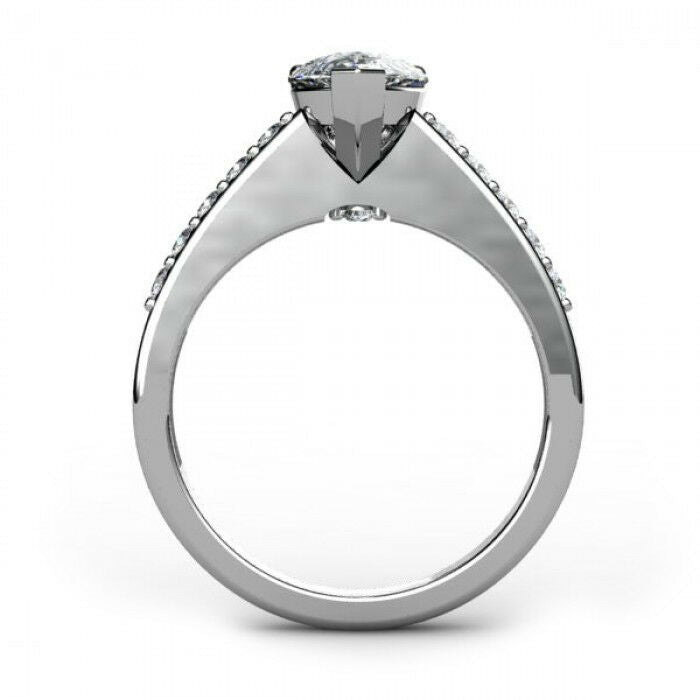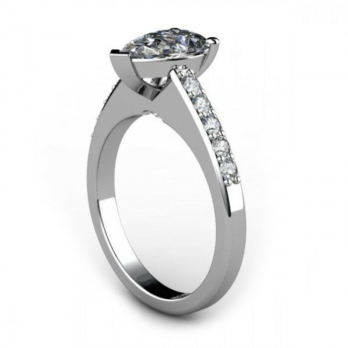 2ct Pear Cut Diamond Accent Solitaire Engagement Ring 14k White Gold Finish New