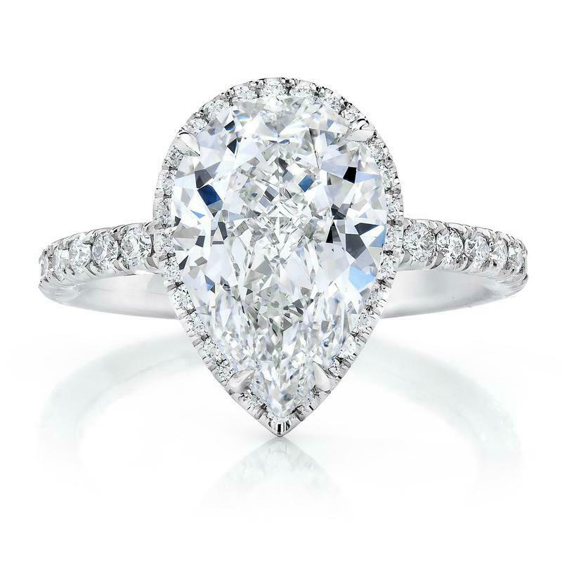 2ct Pear Cut Diamond Accents Halo Solitaire Engagement Ring 14k White Gold Finish