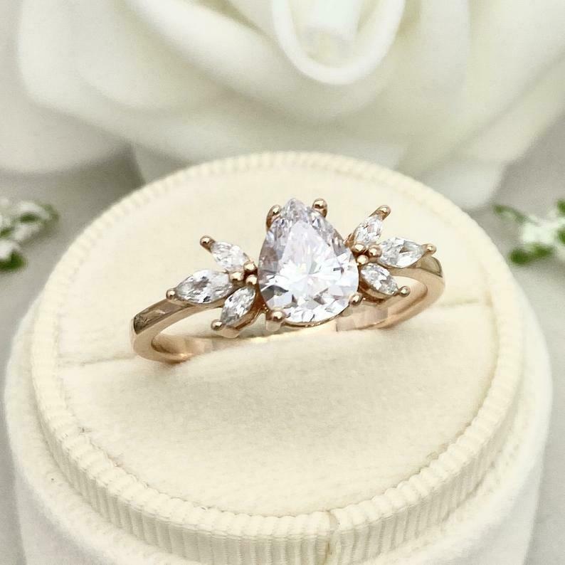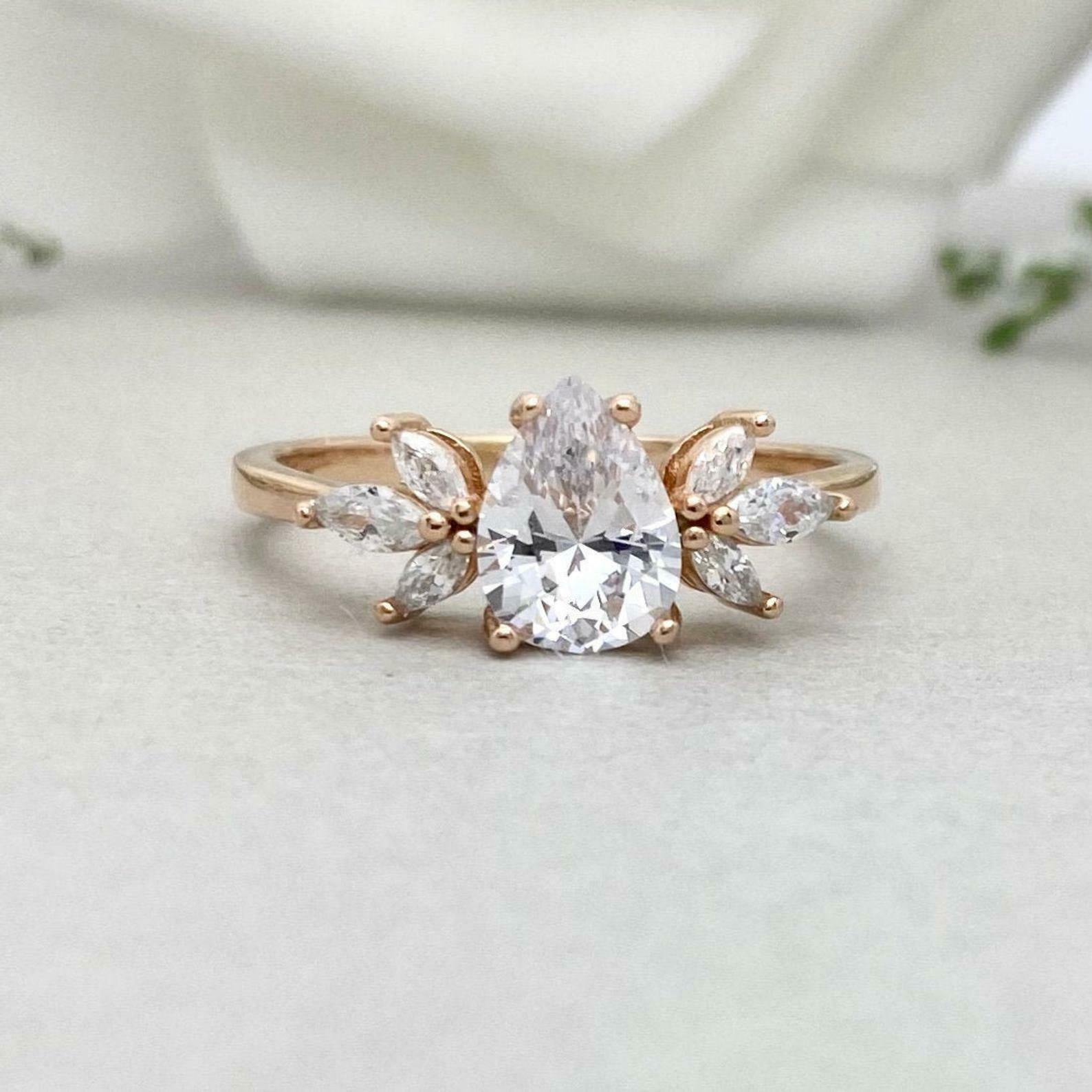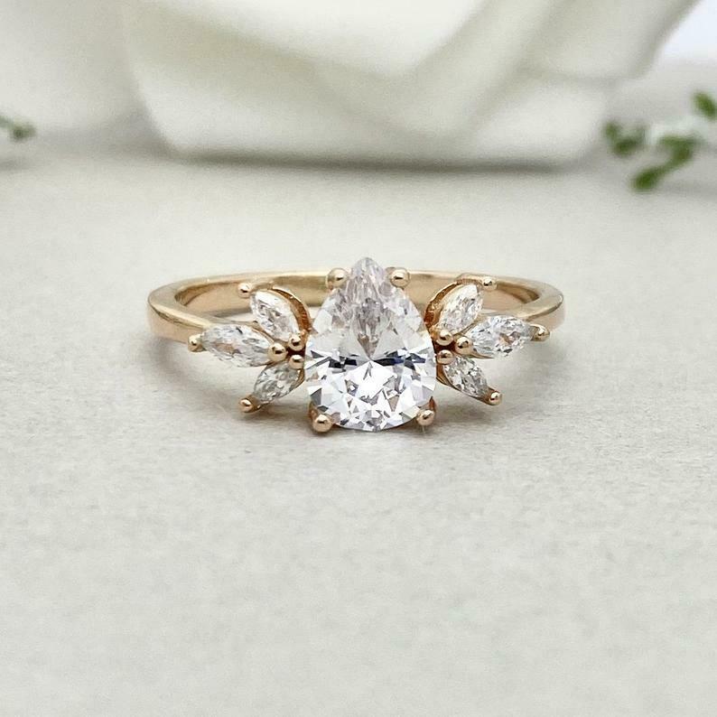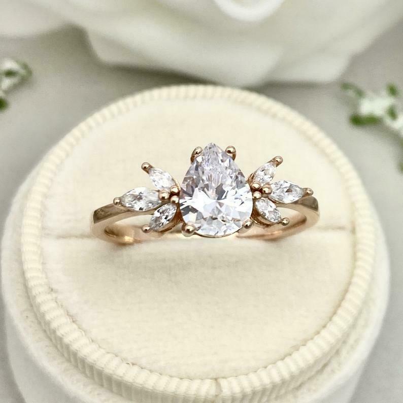 2ct Pear Cut Diamond Engagement Ring Marquise Leaf Accents 14k Yellow Gold Over