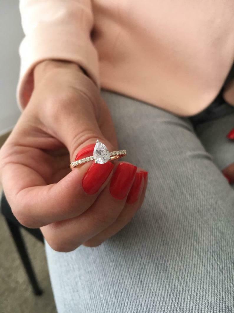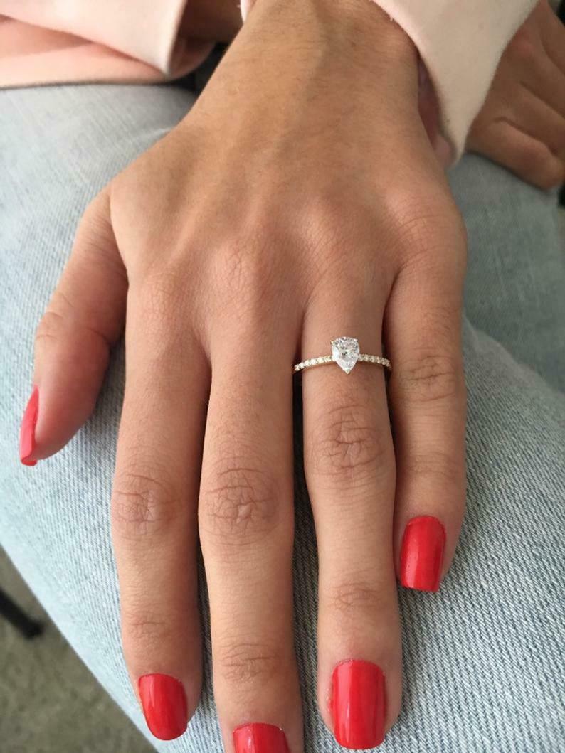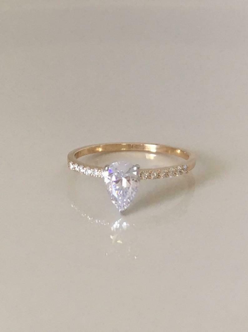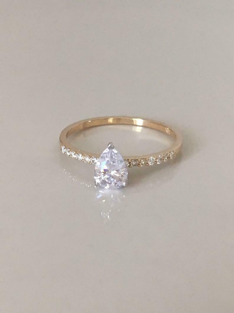 2ct Pear Cut Diamond Engagement Ring Solitaire with Accent 14k Dual Gold Finish