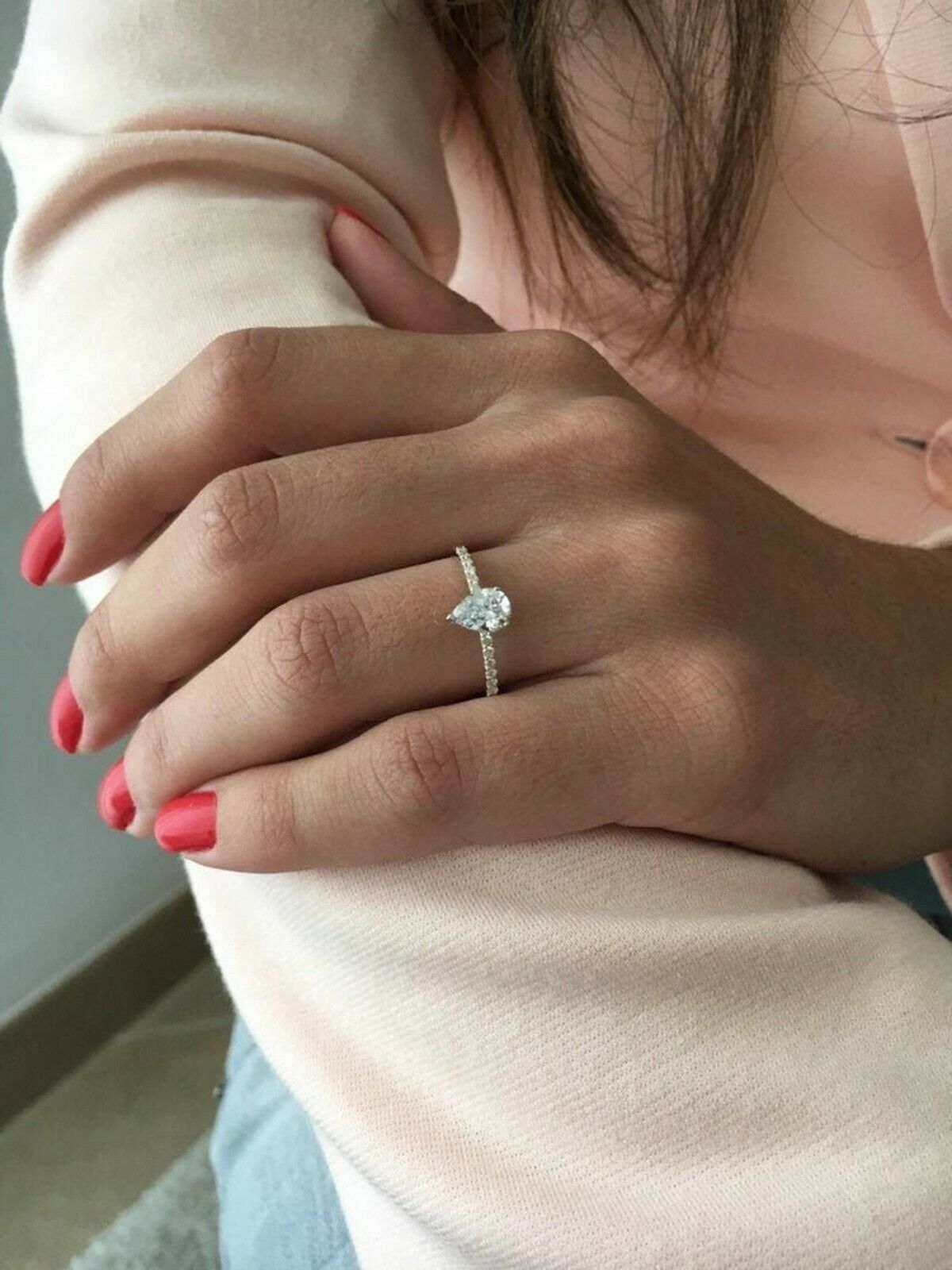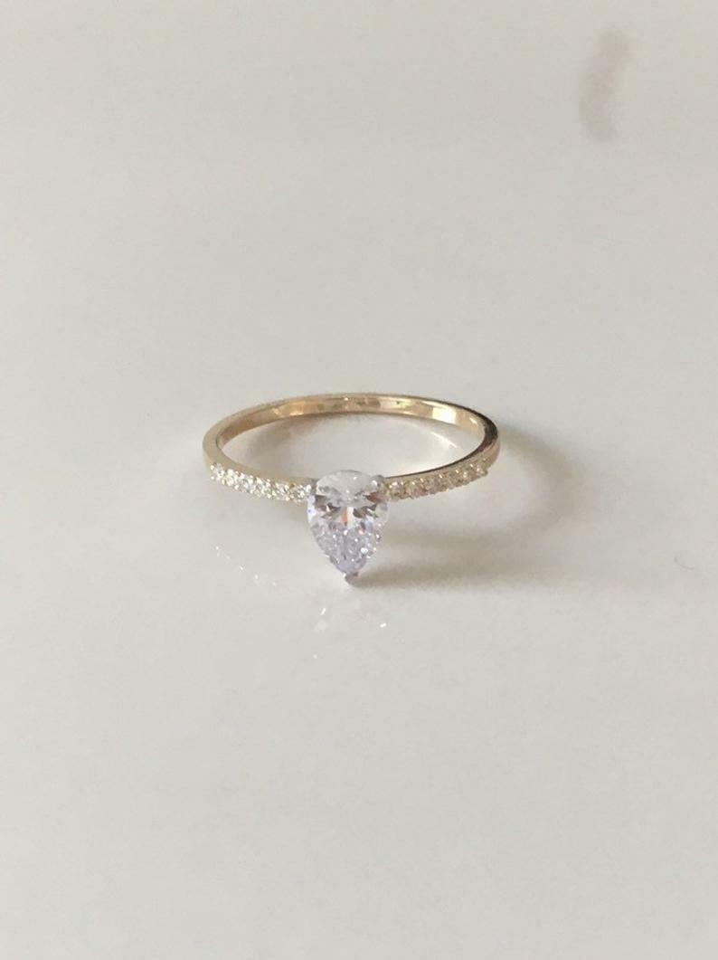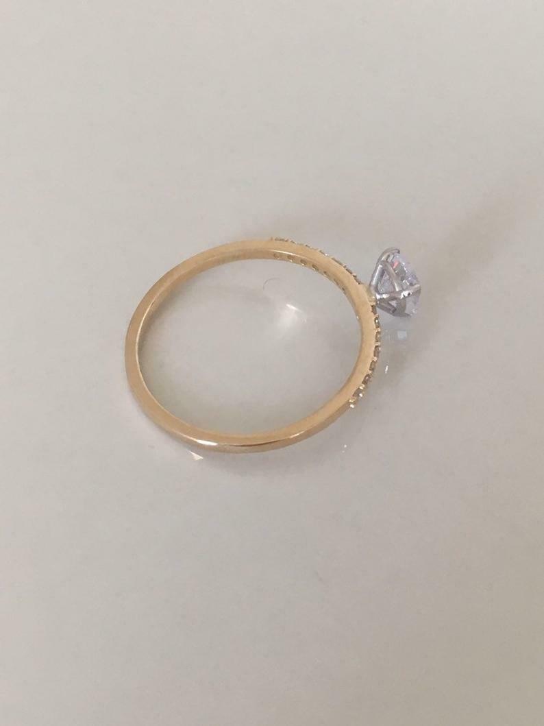 2ct Pear Cut Diamond Engagement Ring Solitaire with Accent 14k Dual Gold Finish