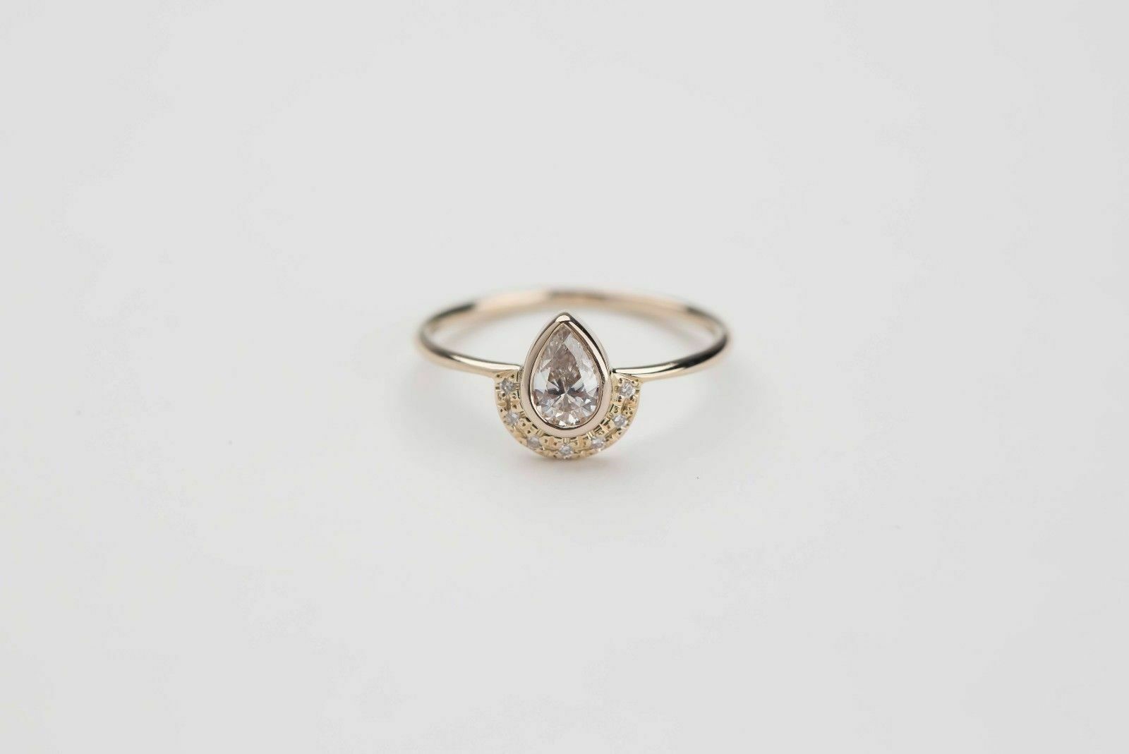 2Ct Pear Cut Diamond Unique Bridal Set Half Halo Ring Band 14K Rose Gold Finish