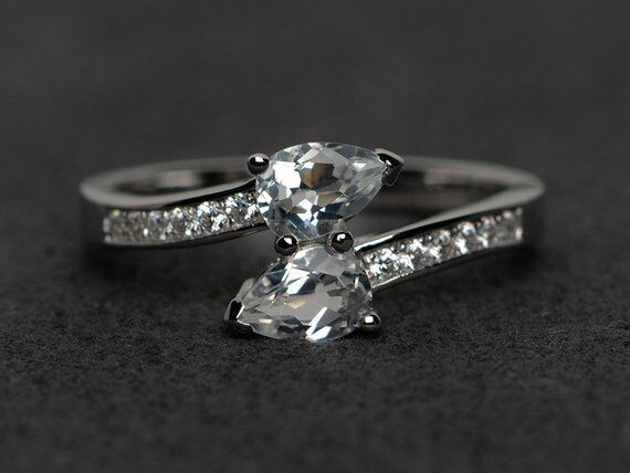 2ct Pear Cut VVS1 Diamond Engagement Ring 14k White Gold Finish Two Stone Bypass