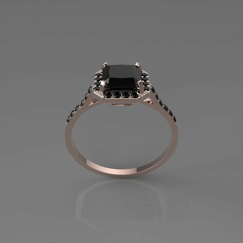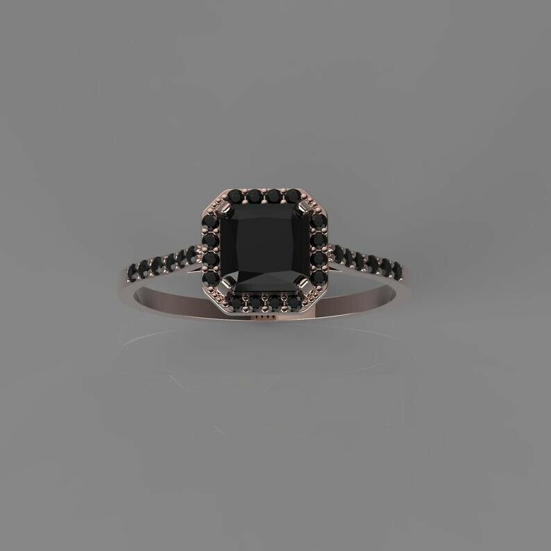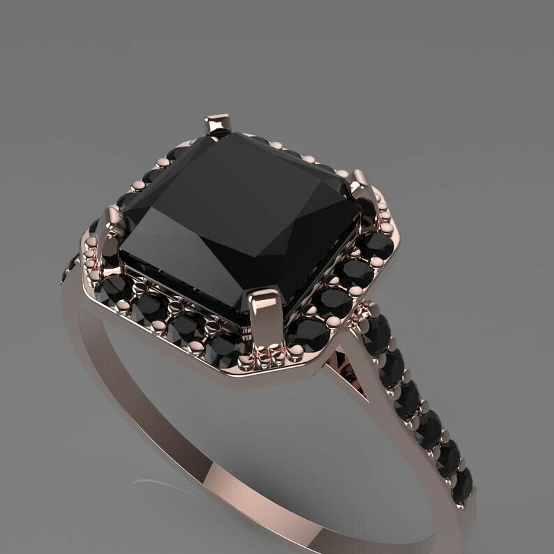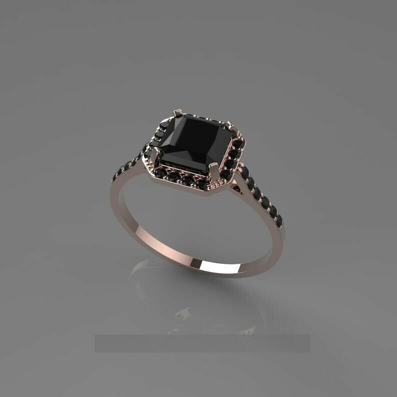 2ct Princess Cut Black Diamond Halo Ring 14k Rose Gold Finish with Round Accents