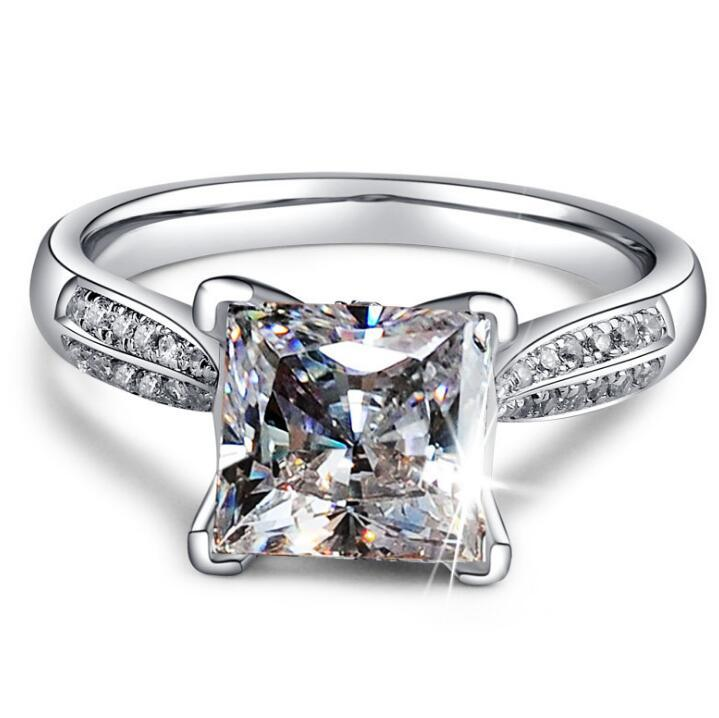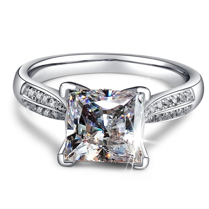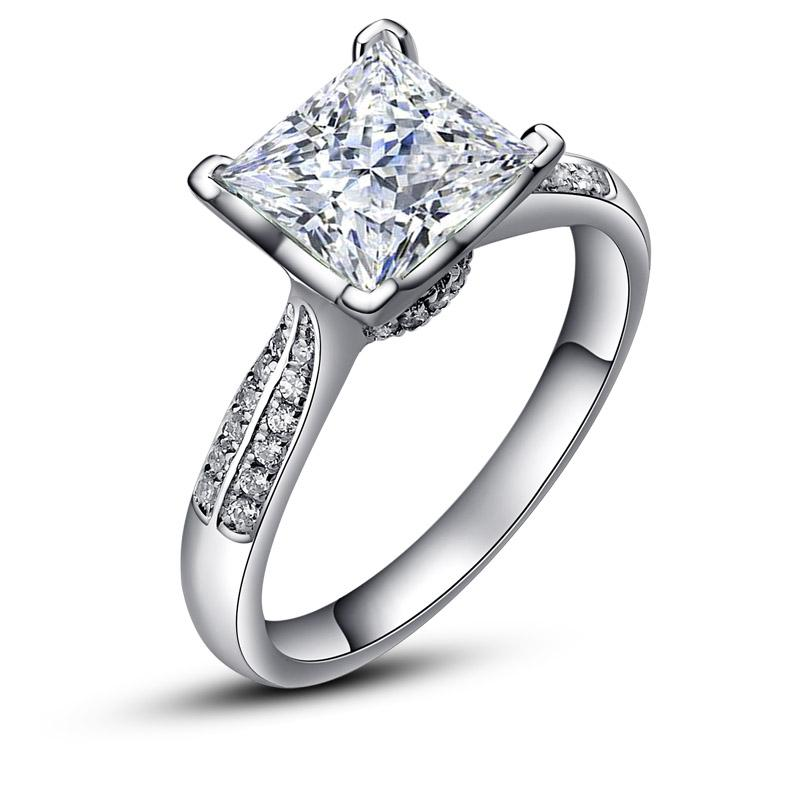 2Ct Princess Cut Diamond Accented Hidden Halo Solitaire Ring 14K White Gold Over