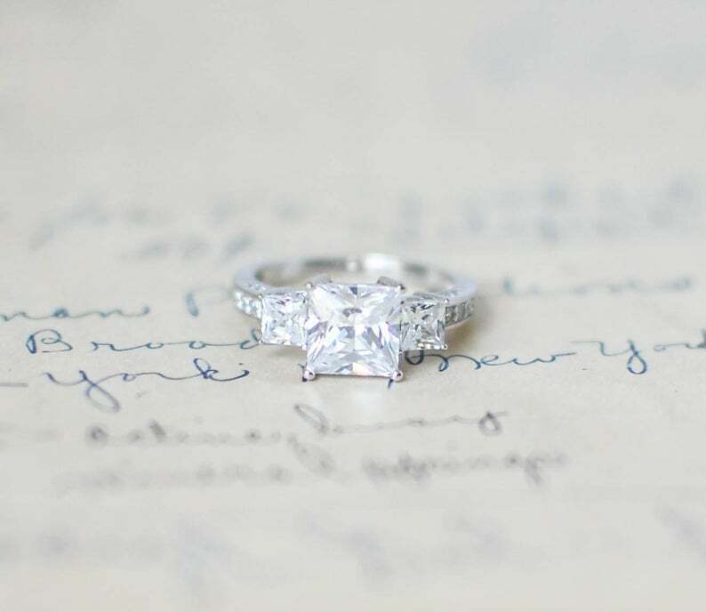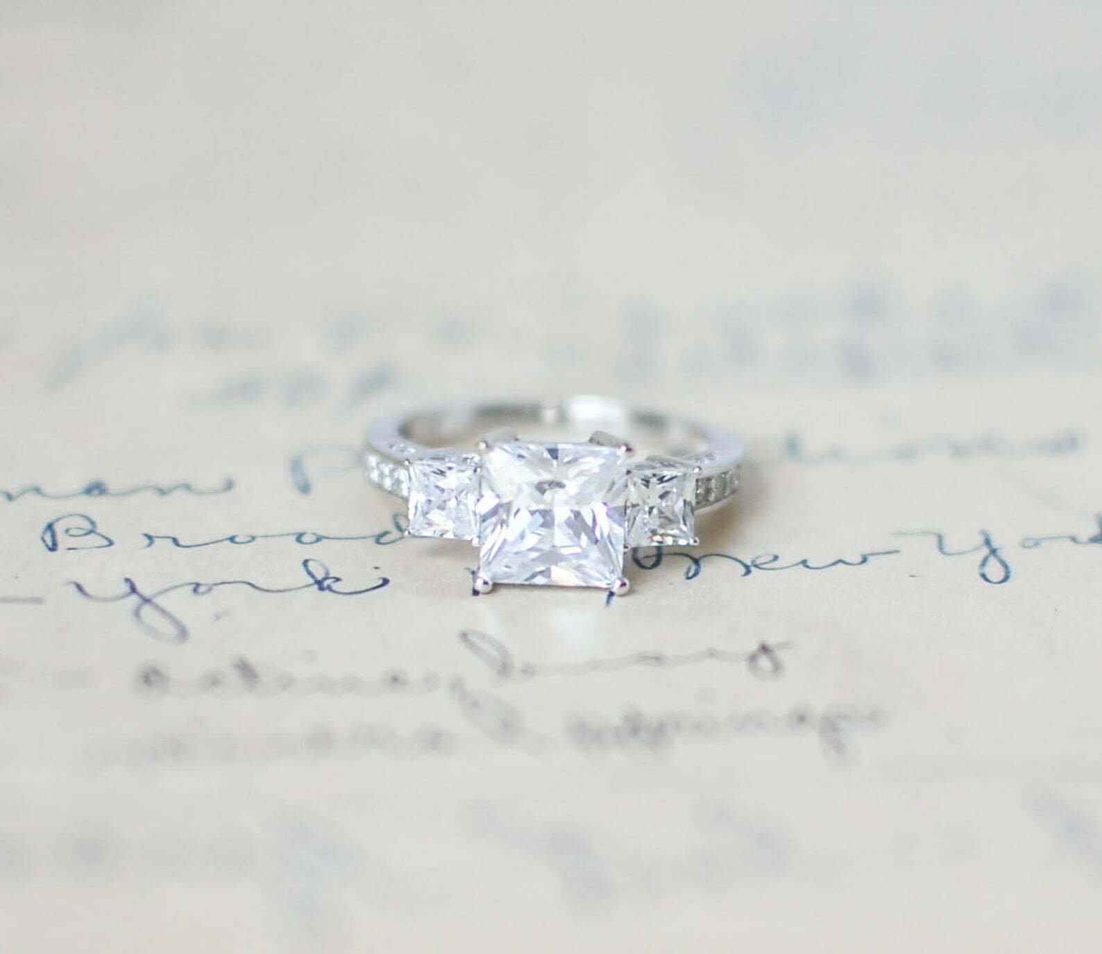 2ct Princess Cut Diamond Accents Trilogy Engagement Ring 14k White Gold Finish