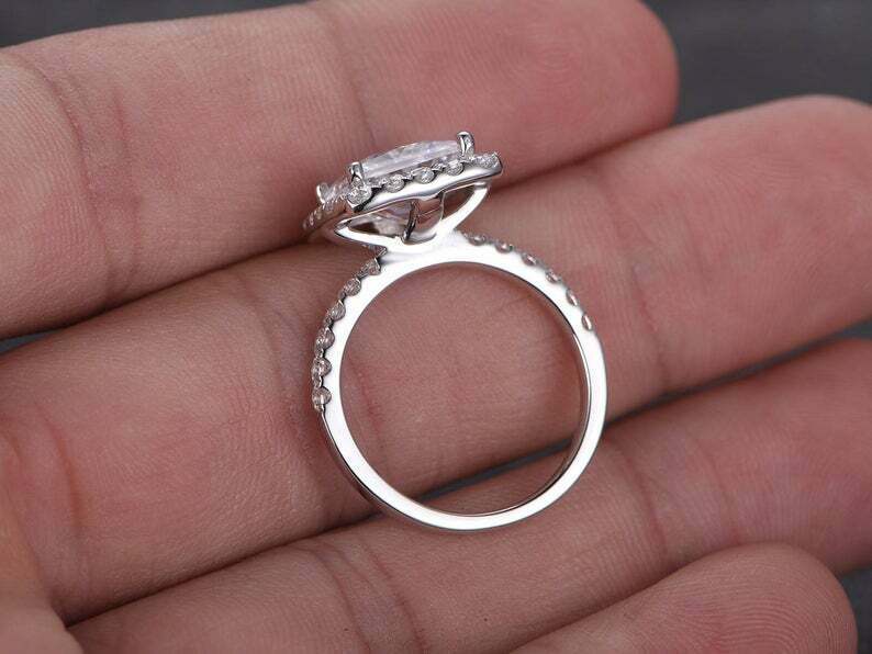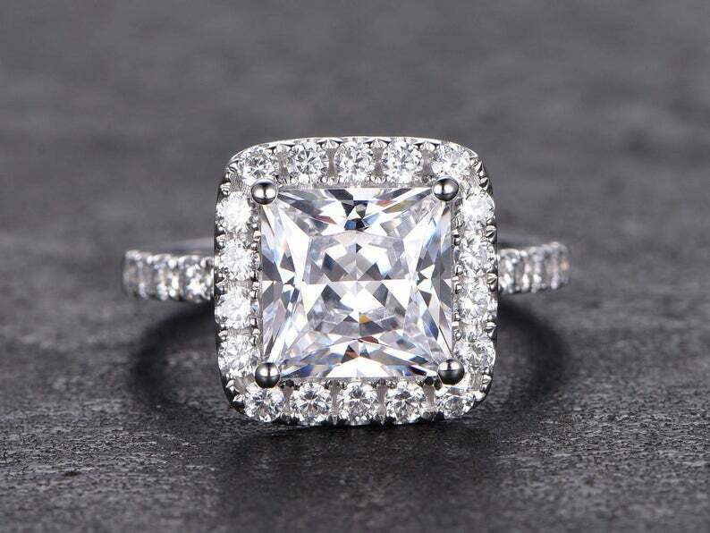 2ct Princess Cut Diamond Engagement Ring Halo 14k White Gold Finish with Accents