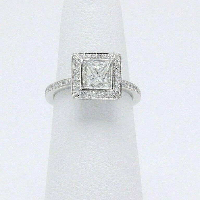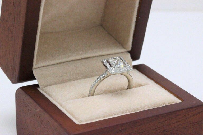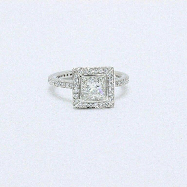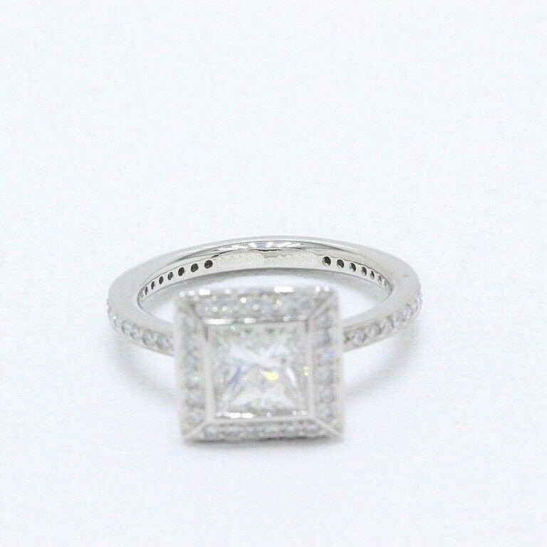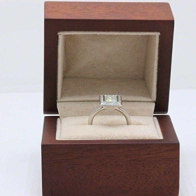 2ct Princess Cut Diamond Engagement Ring Halo Round Accent 14k White Gold Finish