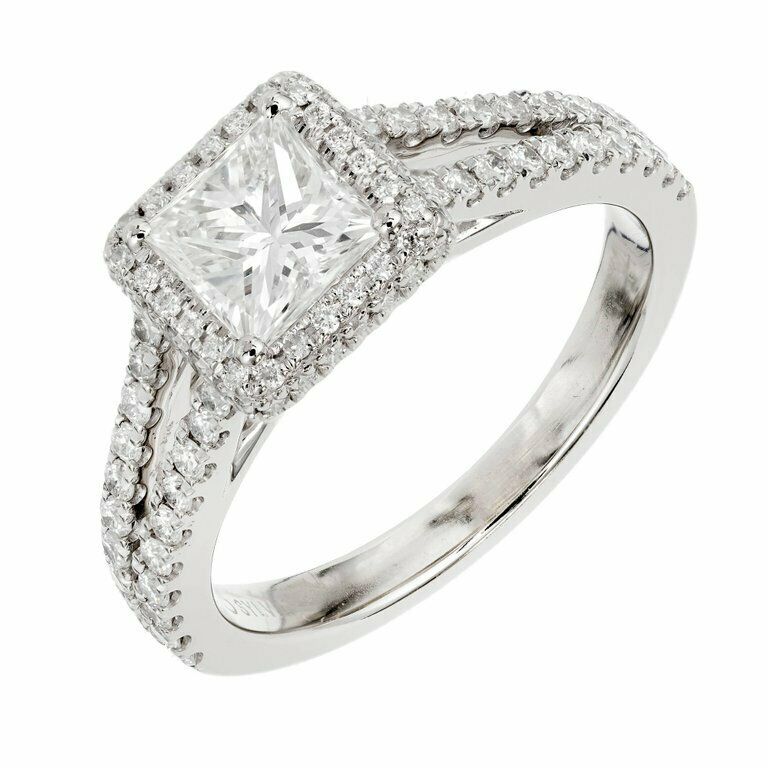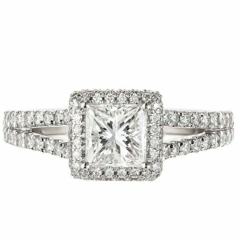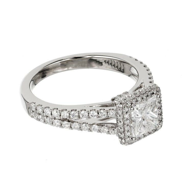 2ct Princess Cut Diamond Engagement Ring Halo Split Shank 14k White Gold Finish