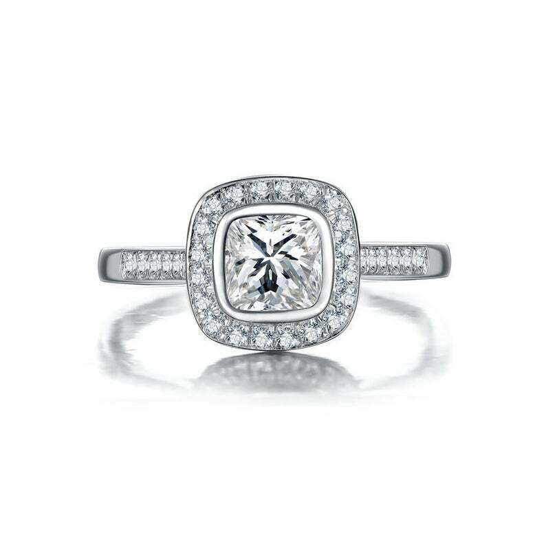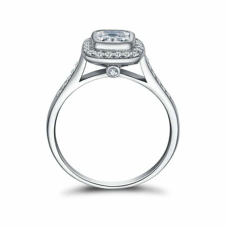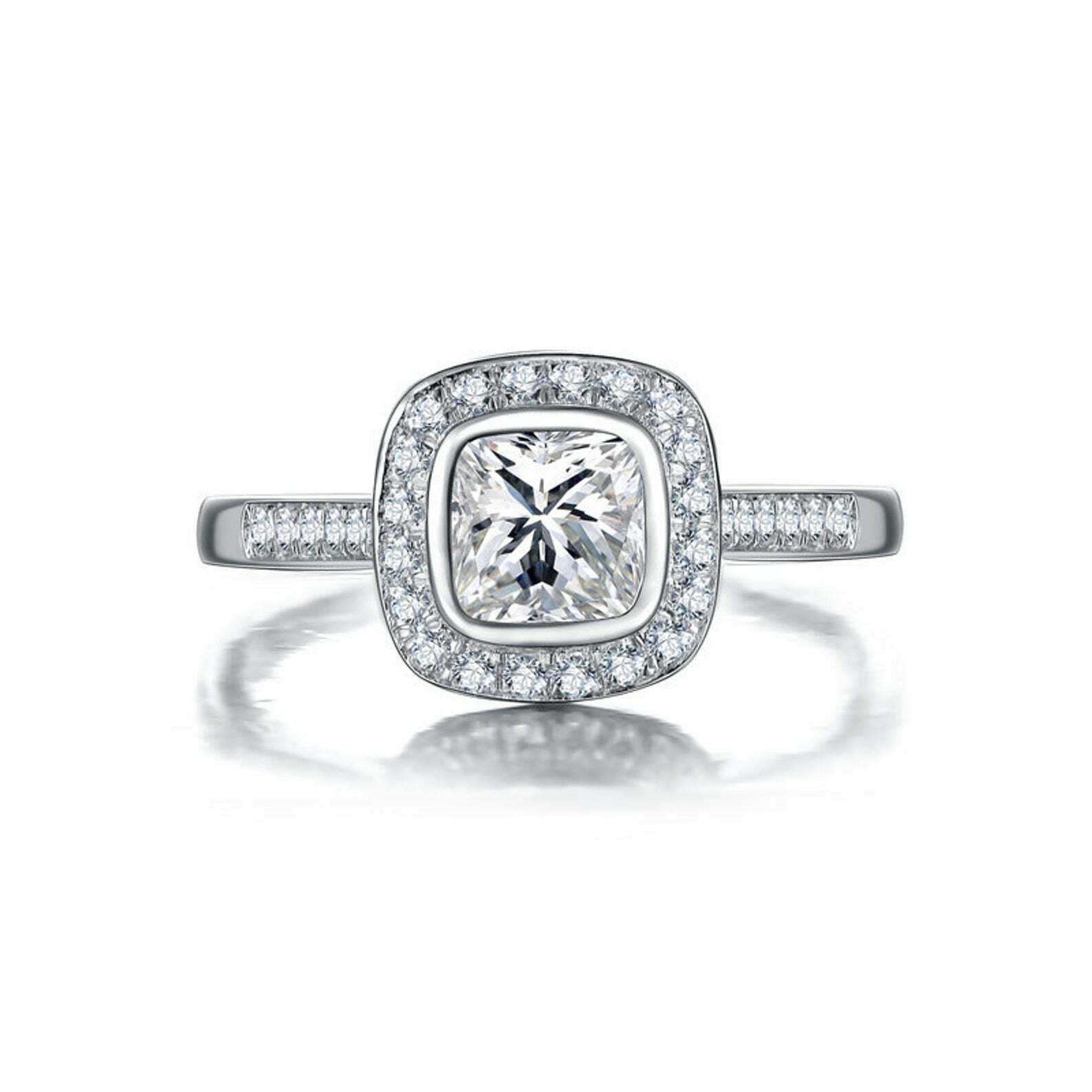 2ct Princess Cut Diamond Halo Engagement Ring 14k White Gold Finish Round Accent