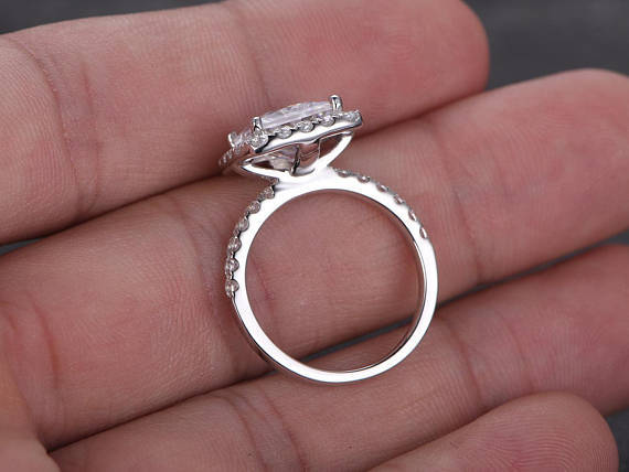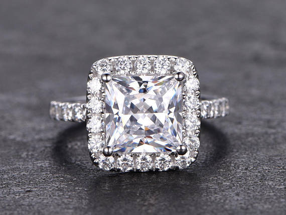 2ct Princess Cut Diamond Halo Engagement Ring 14k White Gold Over Round Accents