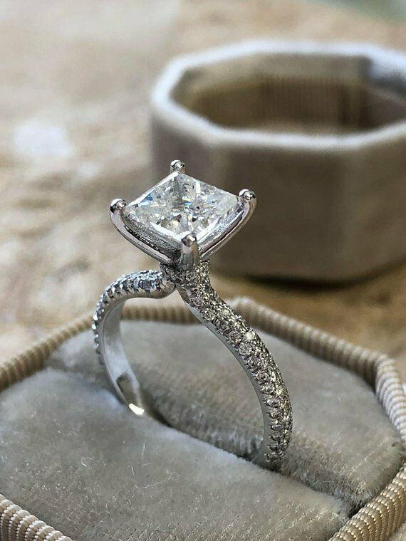 2Ct Princess Cut Diamond Hidden Halo Choker Engagement Ring 14K White Gold Over