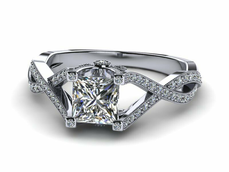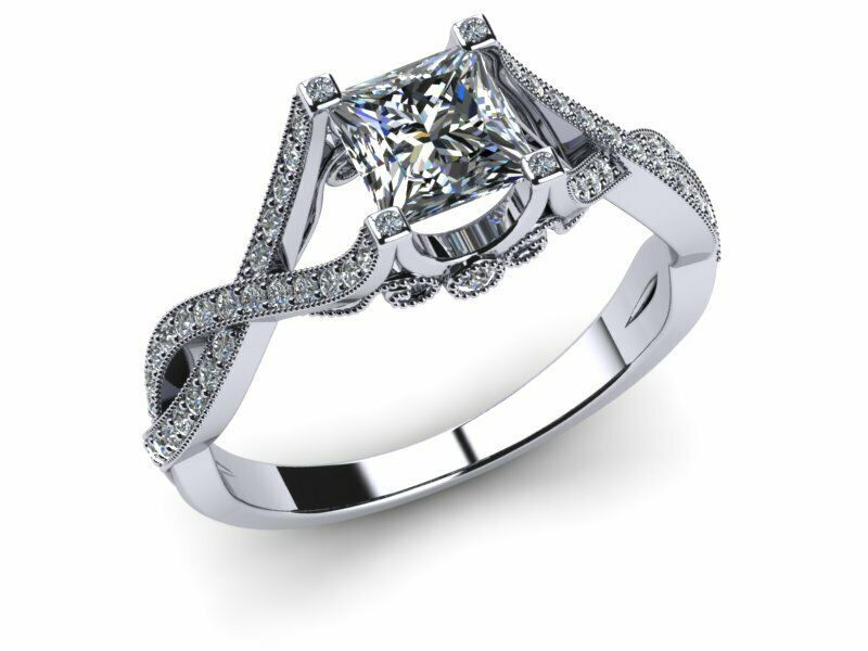2ct Princess Cut Diamond Milgrain Solitaire Engagement Ring 14k WhiteGold Finish