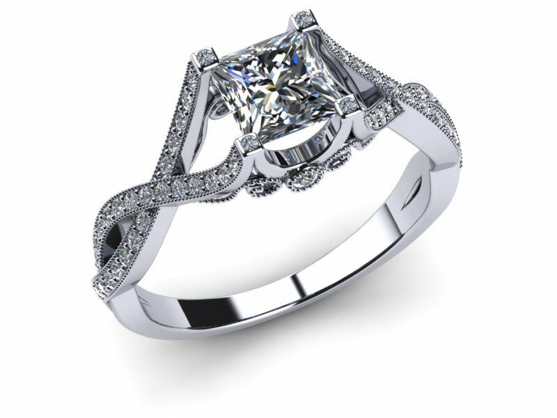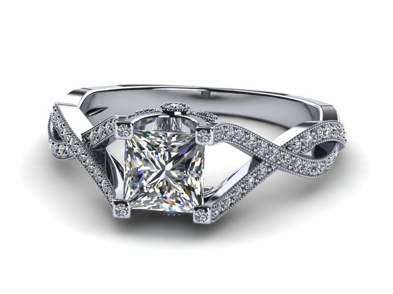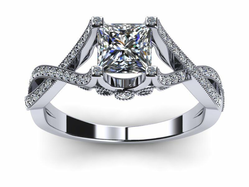 2ct Princess Cut Diamond Milgrain Solitaire Engagement Ring 14k WY Gold Finish