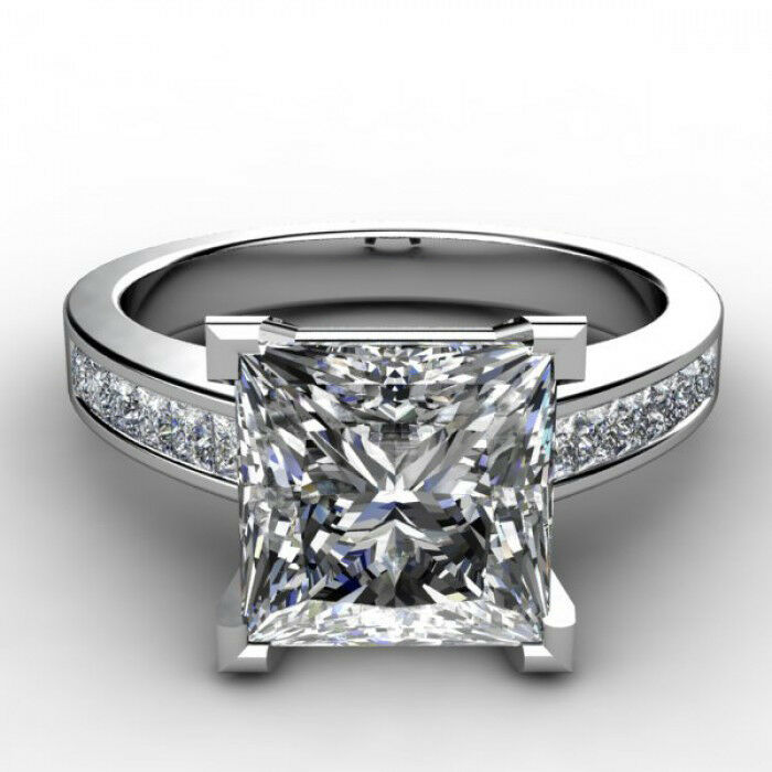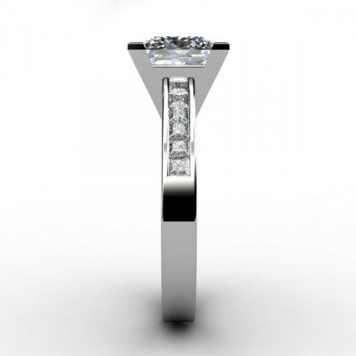 2ct Princess Cut Diamond Pave Style Accent Engagement Ring 14k White Gold Finish