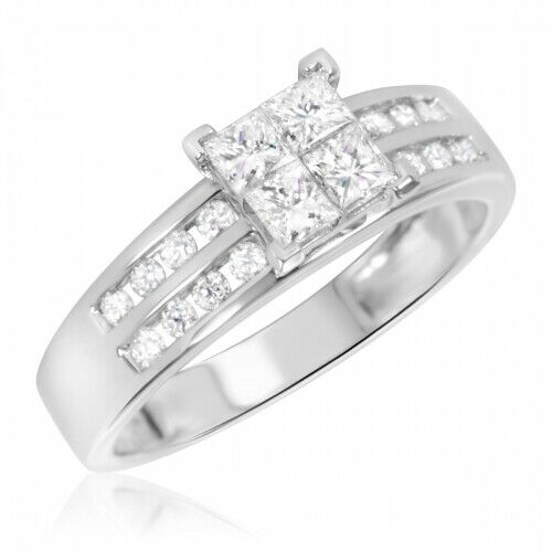 2Ct Princess Cut Diamond Round Accents Engagement Ring 14K White Gold Finish