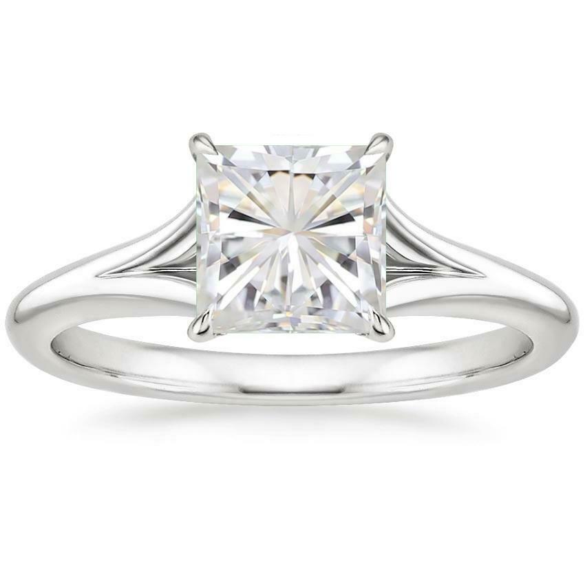 2ct Princess Cut Diamond Solitaire Ring 14k White Gold Finish Twist Split Shank
