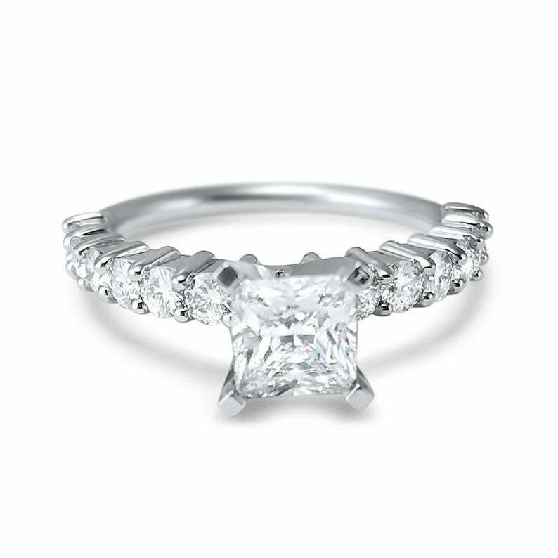 2ct Princess Cut Diamond Solitaire Ring 14k White Gold Finish with Round Accents