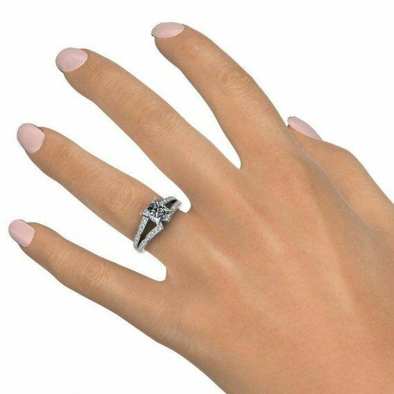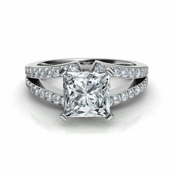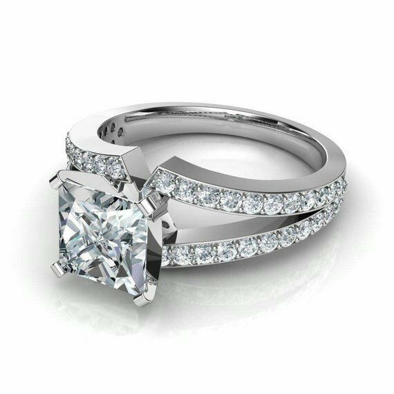 2ct Princess Cut Diamond Split Shank Band Engagement Ring 14k White Gold Finish