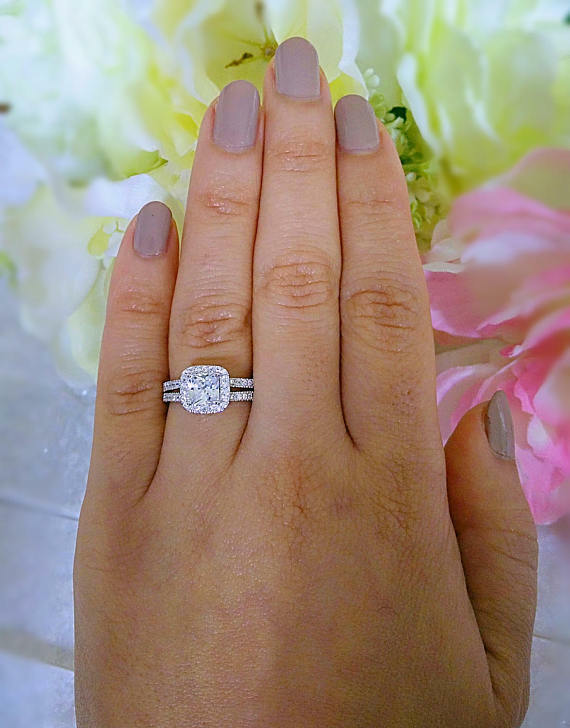 2ct Princess Cut Diamond Split Shank Halo Engagement Ring 14k White Gold Finish