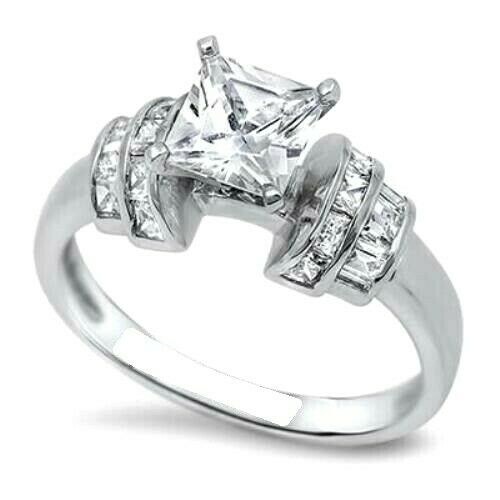 2Ct Princess Cut Diamond Unique Solitaire Engagement Ring 14K White Gold Finish