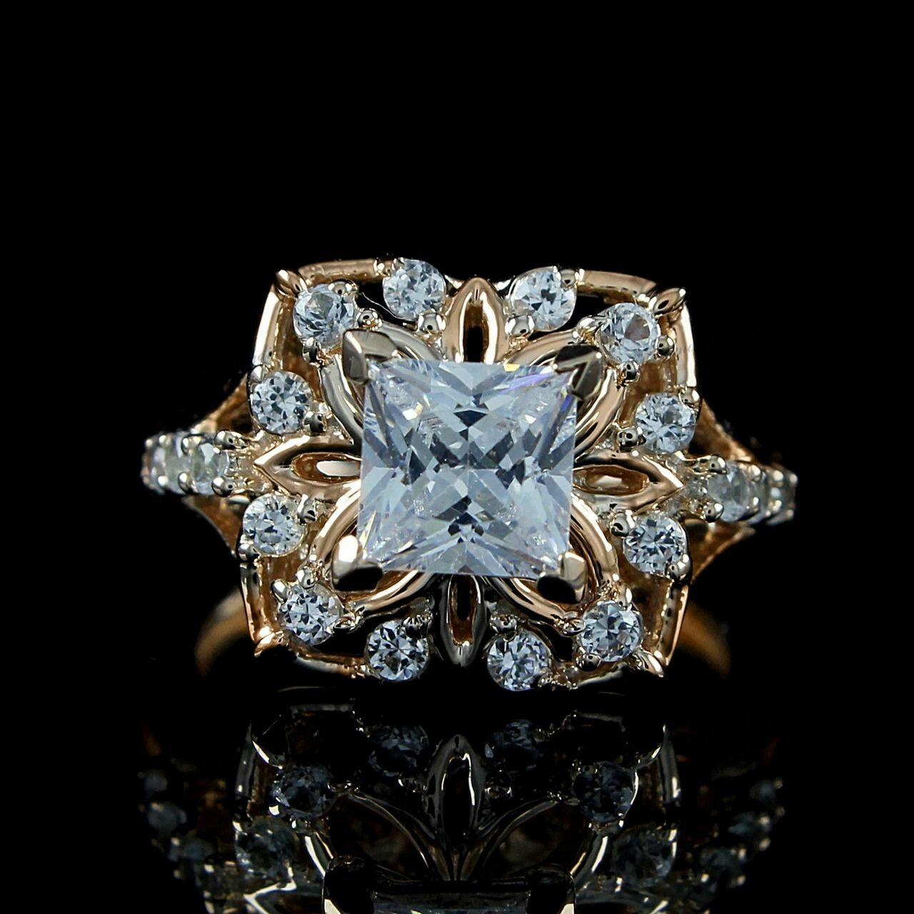 2Ct Princess Cut DVVS1 Diamond Art Deco Engagement Ring 14K Rose Gold Finish