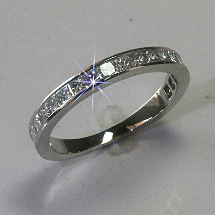 2ct Princess Cut Diamond Channel Set Eternity Wedding Ring Band 14k White Gold Over