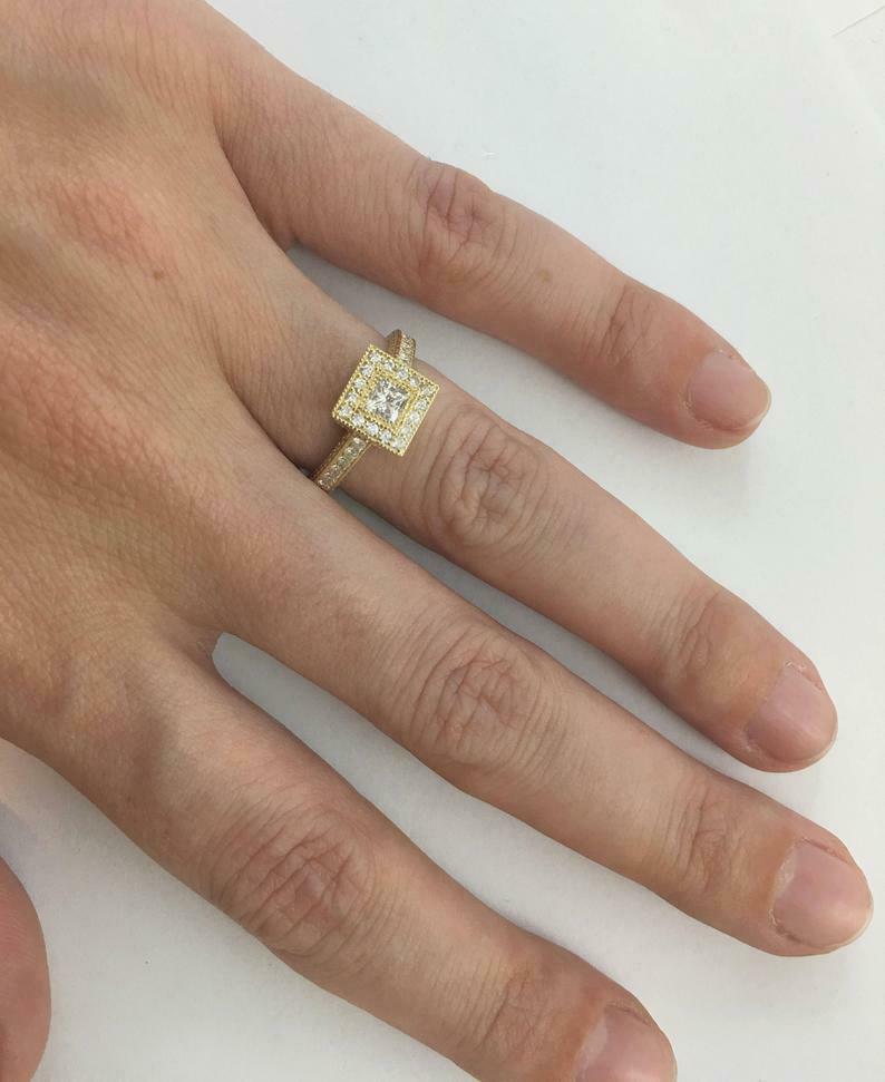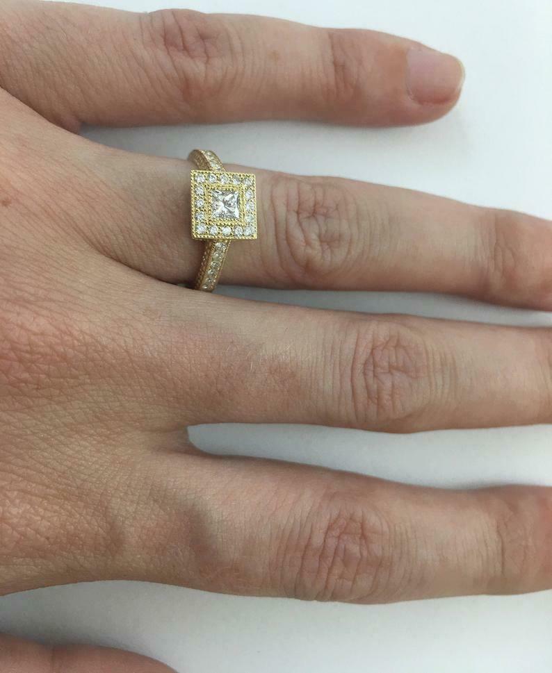 2ct Princess Diamond Engagement Ring Antique Inspired Halo 14k Yellow Gold Over
