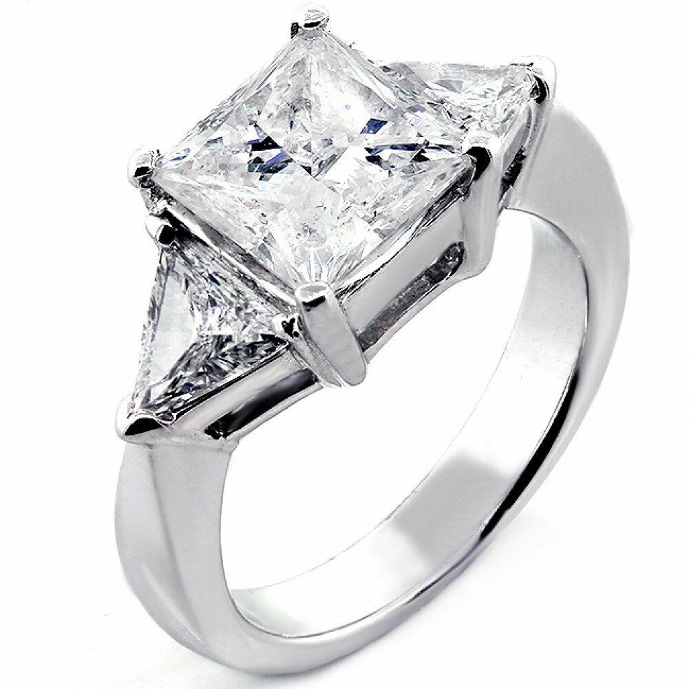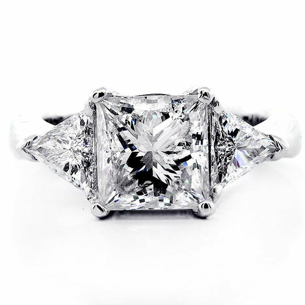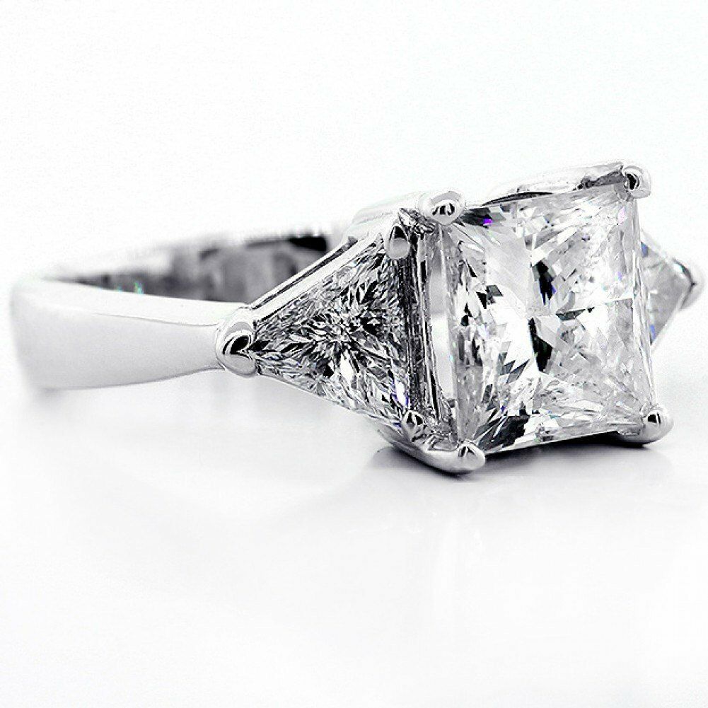 2ct Princess Trillion Cut Diamond Trilogy Engagement Ring 14k White Gold Finish