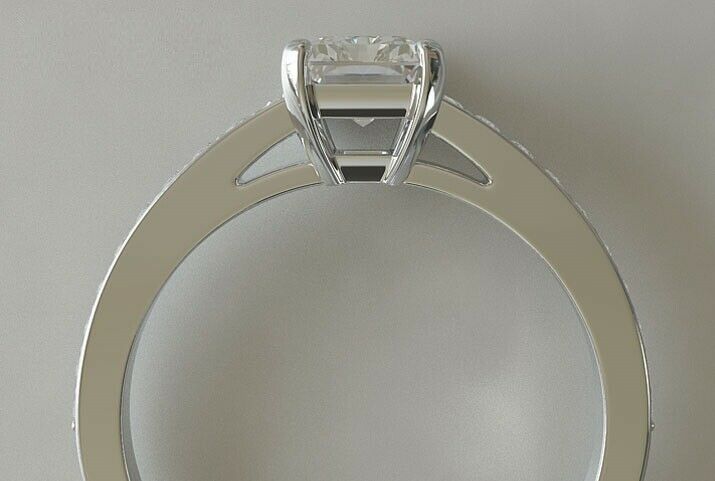 2ct Radiant Cut Diamond Engagement Ring Bead Set Round Accent 14k WhiteGold Over