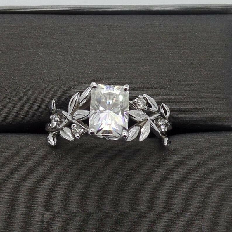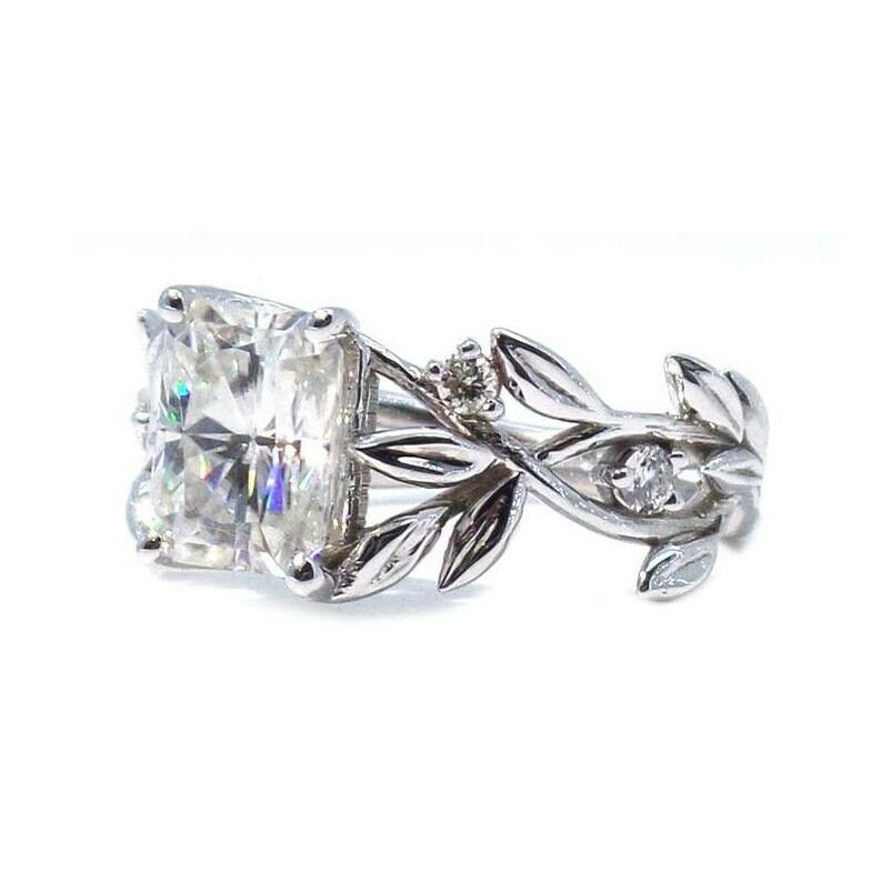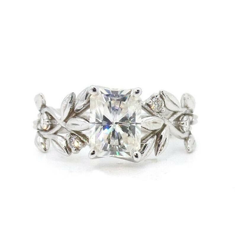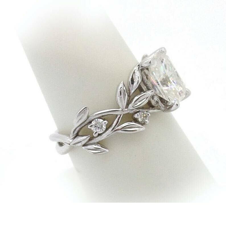 2ct Radiant Cut Diamond Engagement Ring Flower Leaf Solitaire 14k WhiteGold Over
