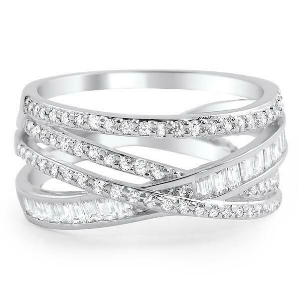 2ct Round Baguette Diamond Unique Split Band Engagement Ring14k White Gold Over