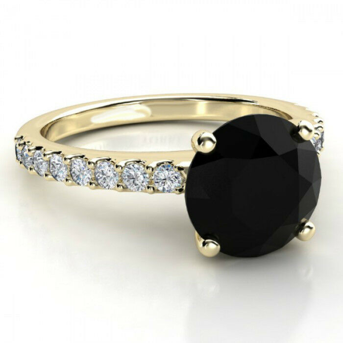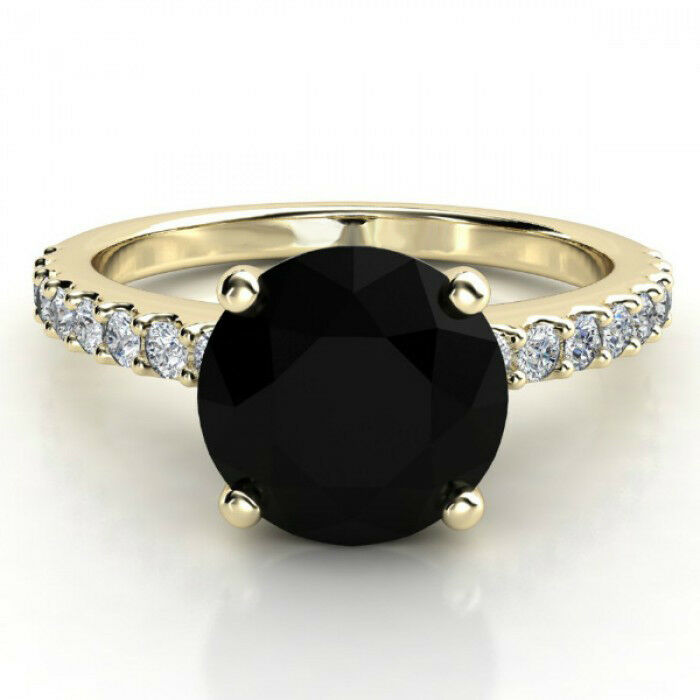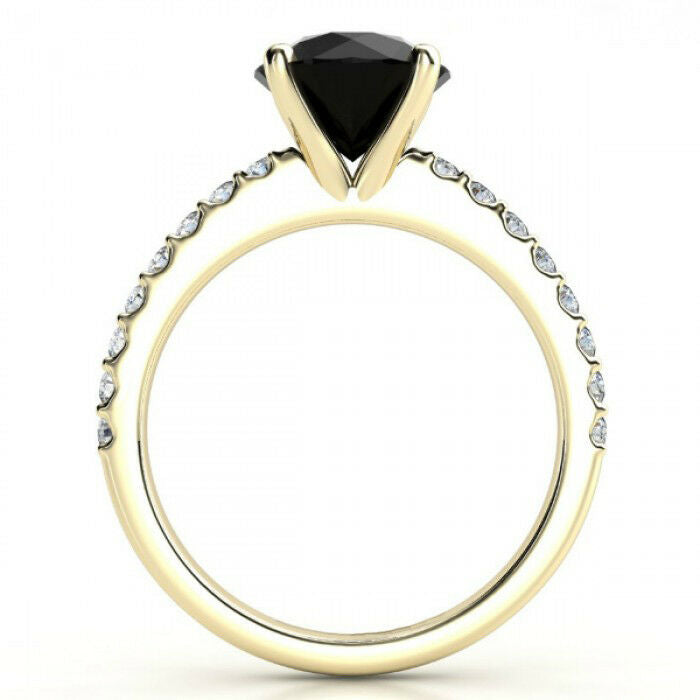 2ct Round Black Diamond Accent Solitaire Engagement Ring 14k Yellow Gold Finish