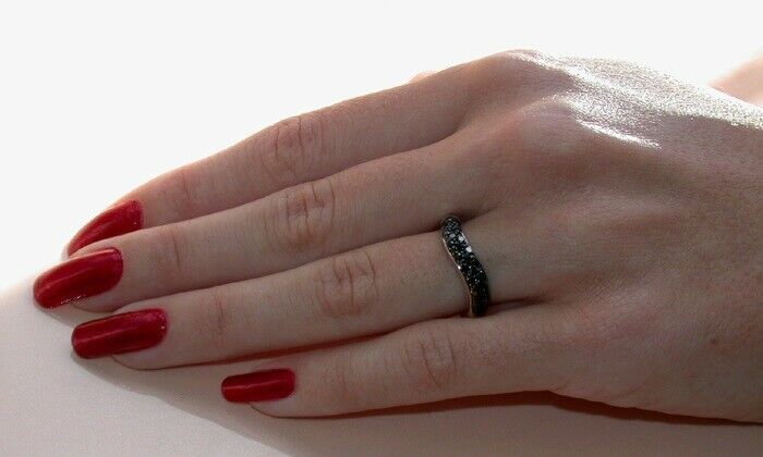 2Ct Round Cut Black Curved Cluster Engagement Ring Band 14K White Gold Finish