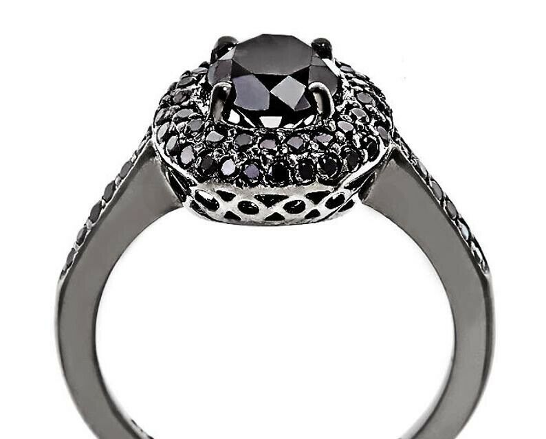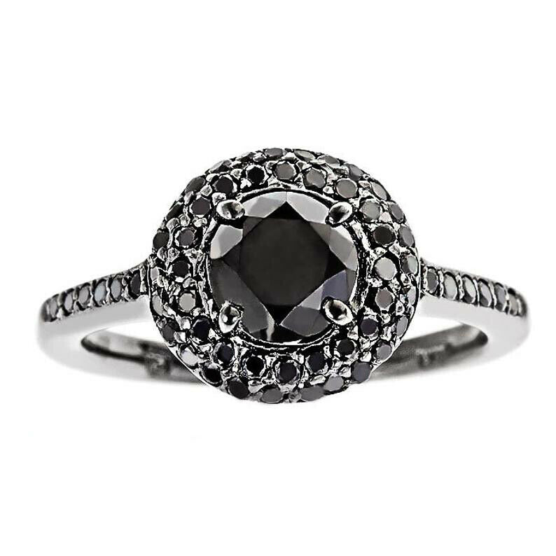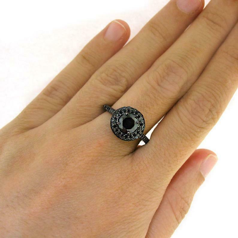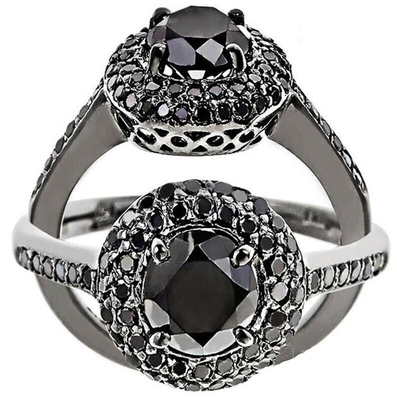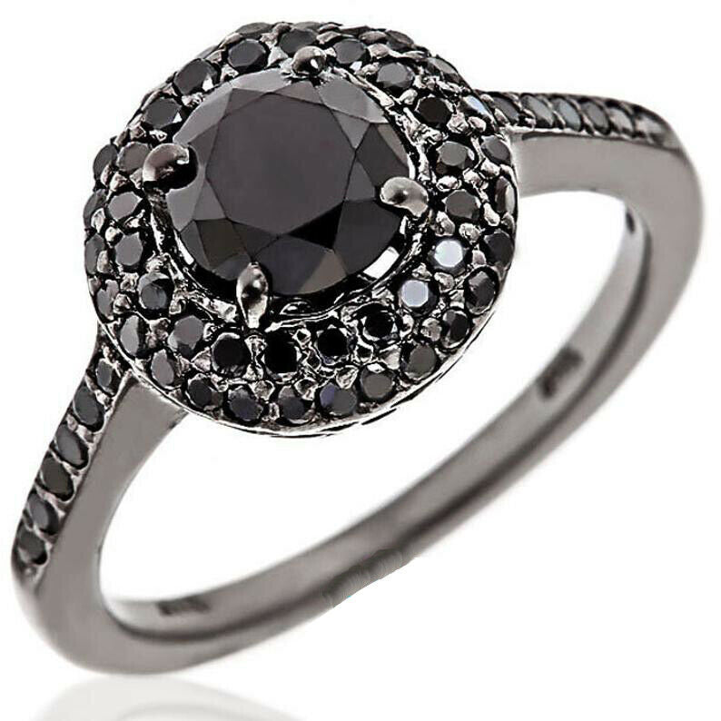 2ct Round Cut Black Diamond Engagement Ring Double Halo 14k Black Gold Finish