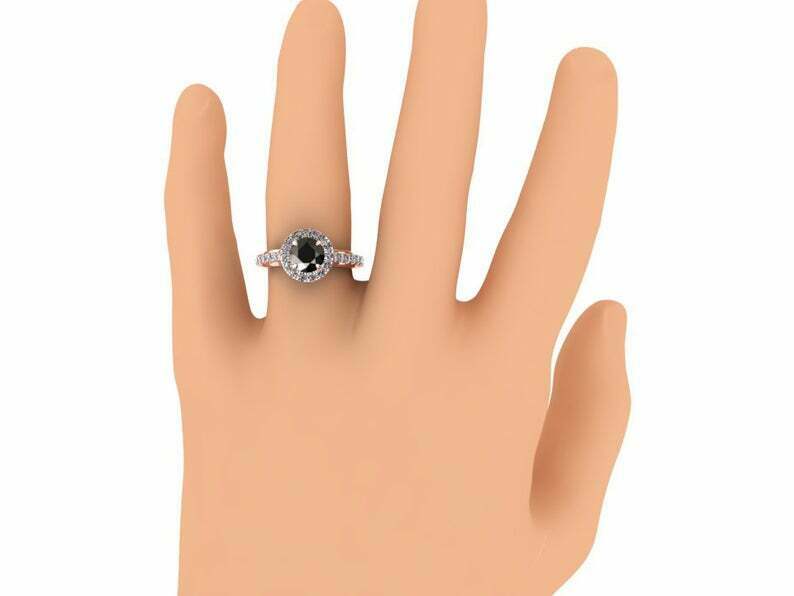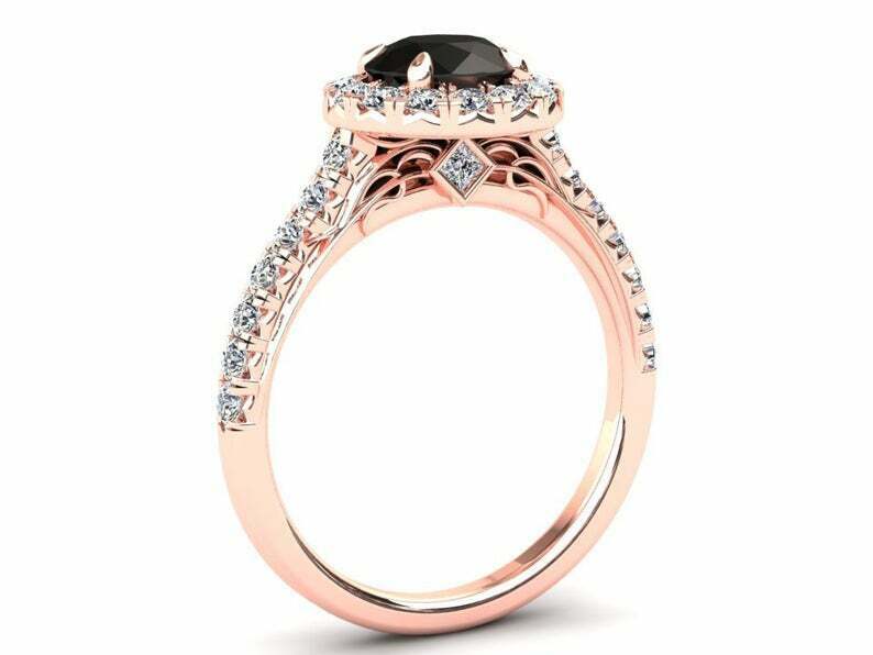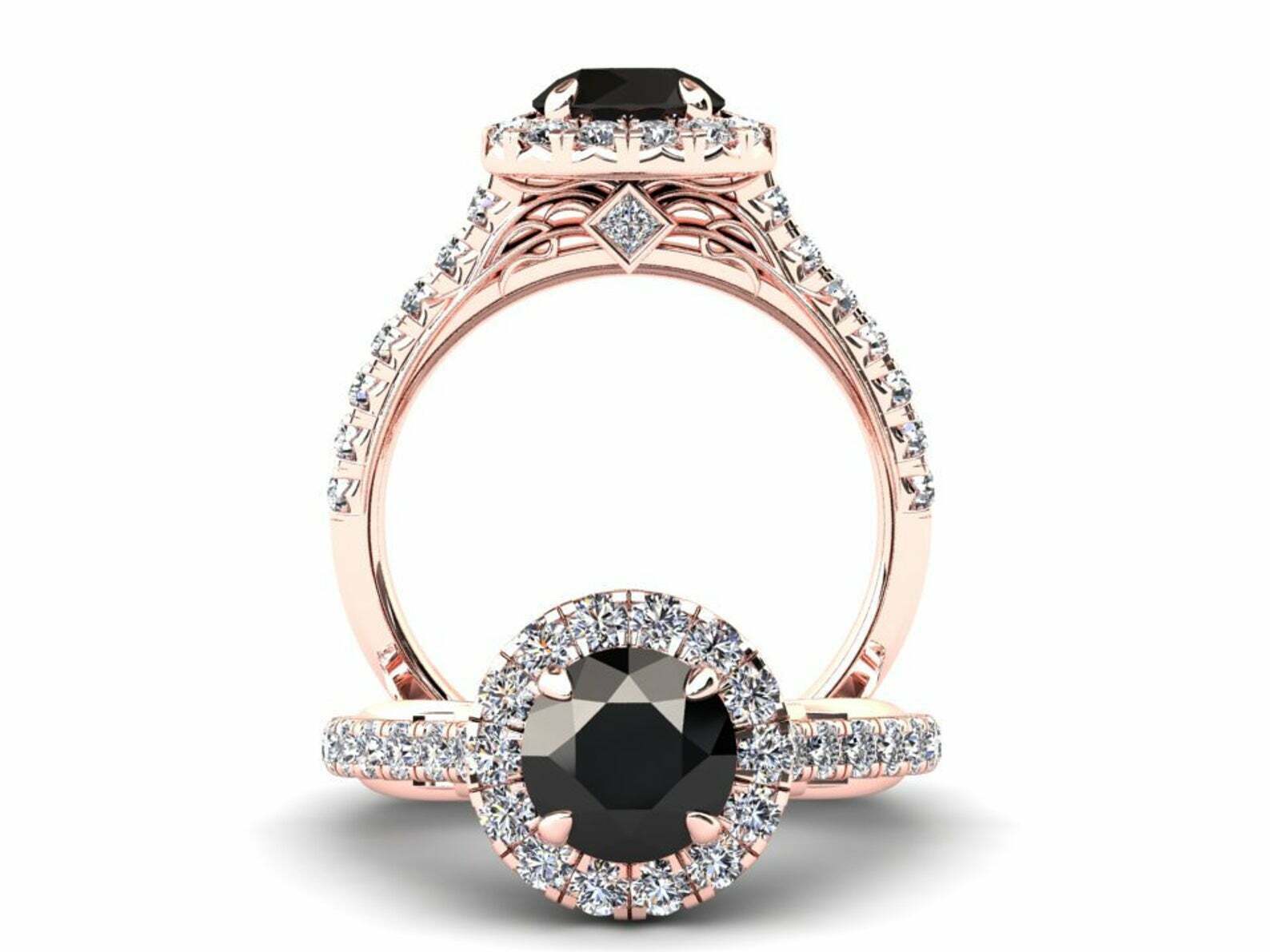 2ct Round Cut Black Diamond Engagement Ring Halo Bridal Set 14k Rose Gold Finish