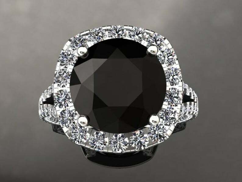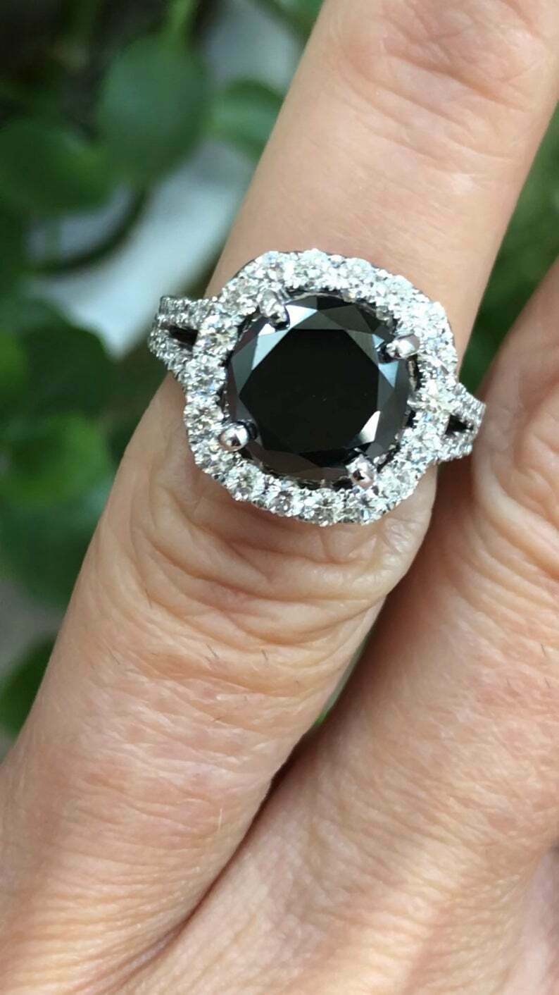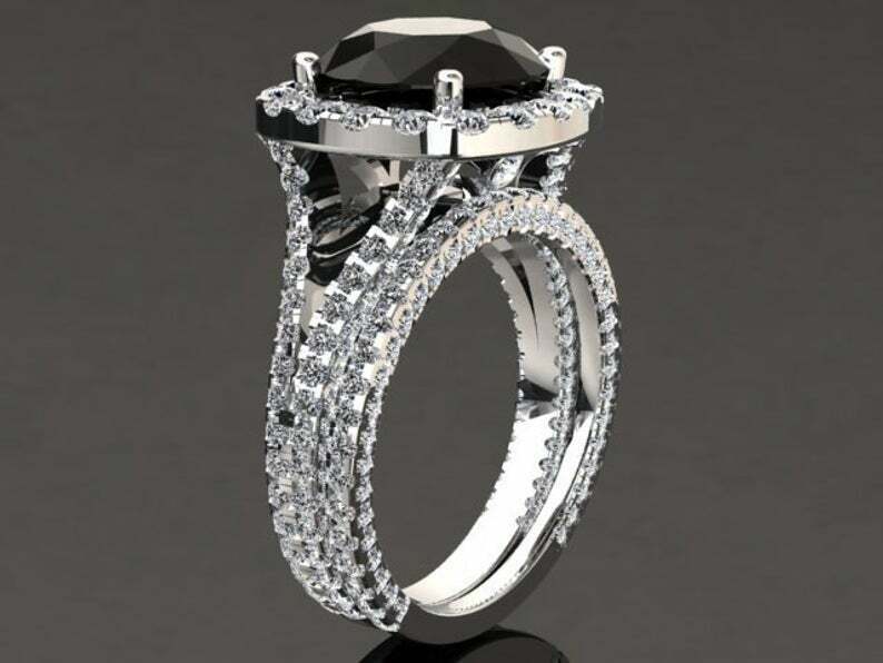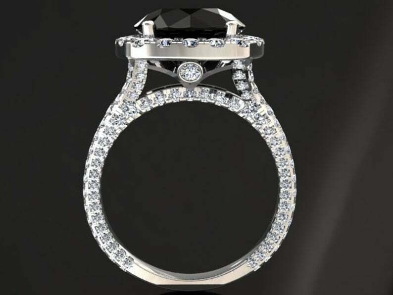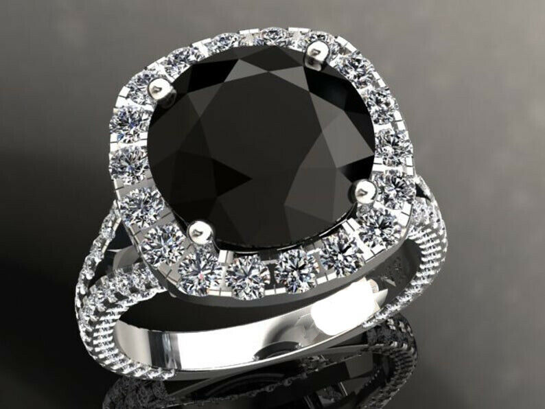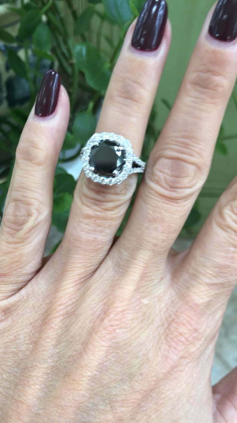 2ct Round Cut Black Diamond Engagement Ring Halo Split Shank 14k White Gold Over