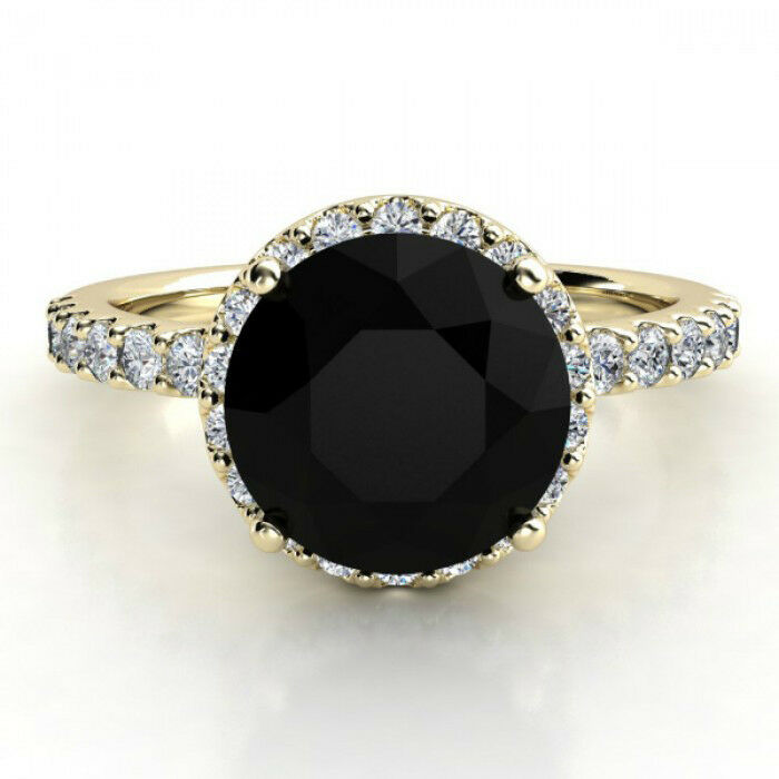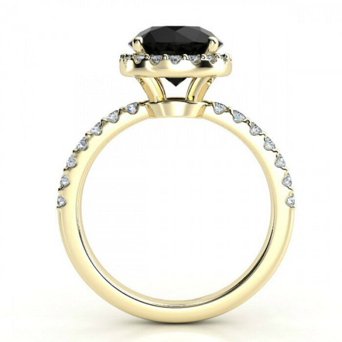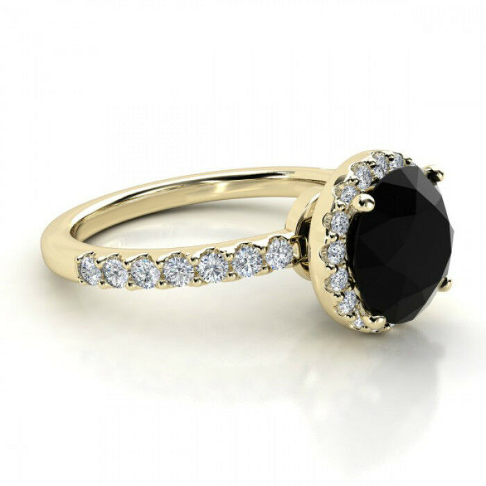 2ct Round Cut Black Diamond Halo Solitaire Engagement Ring 14k YellowGold Finish