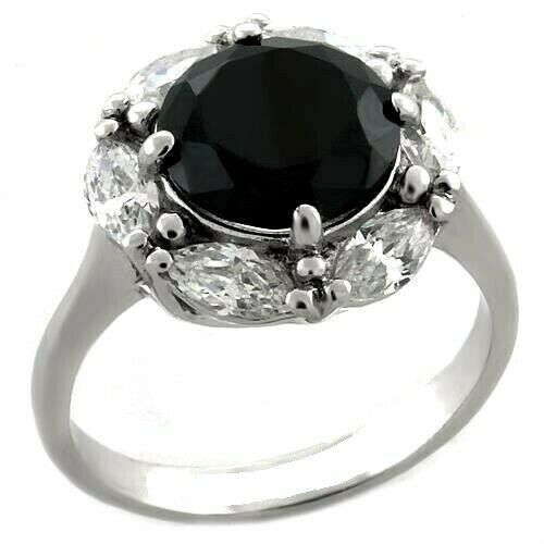 2Ct Round Cut Black Diamond Marquise Halo Engagement Ring 14K White Gold Finish