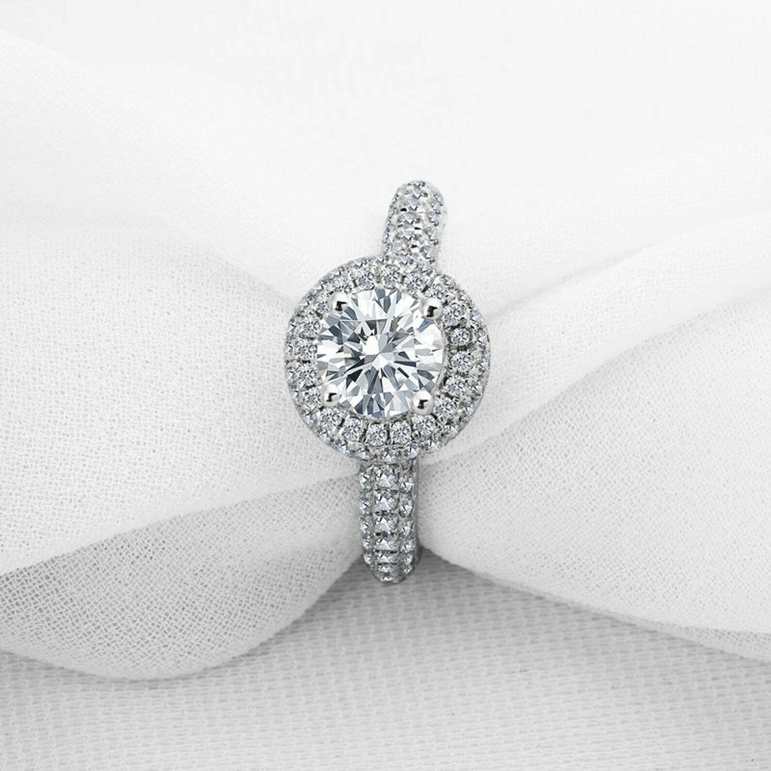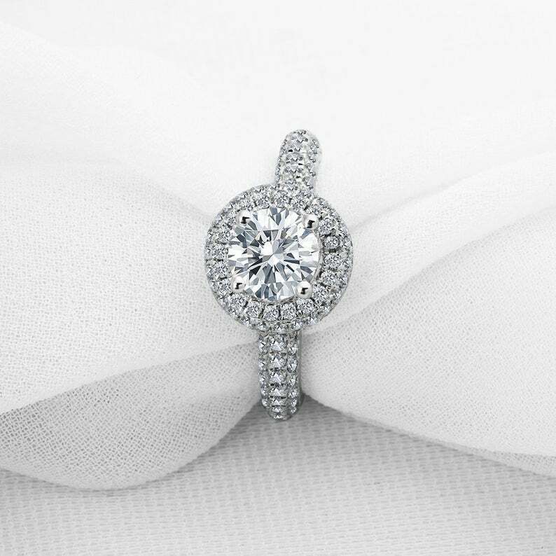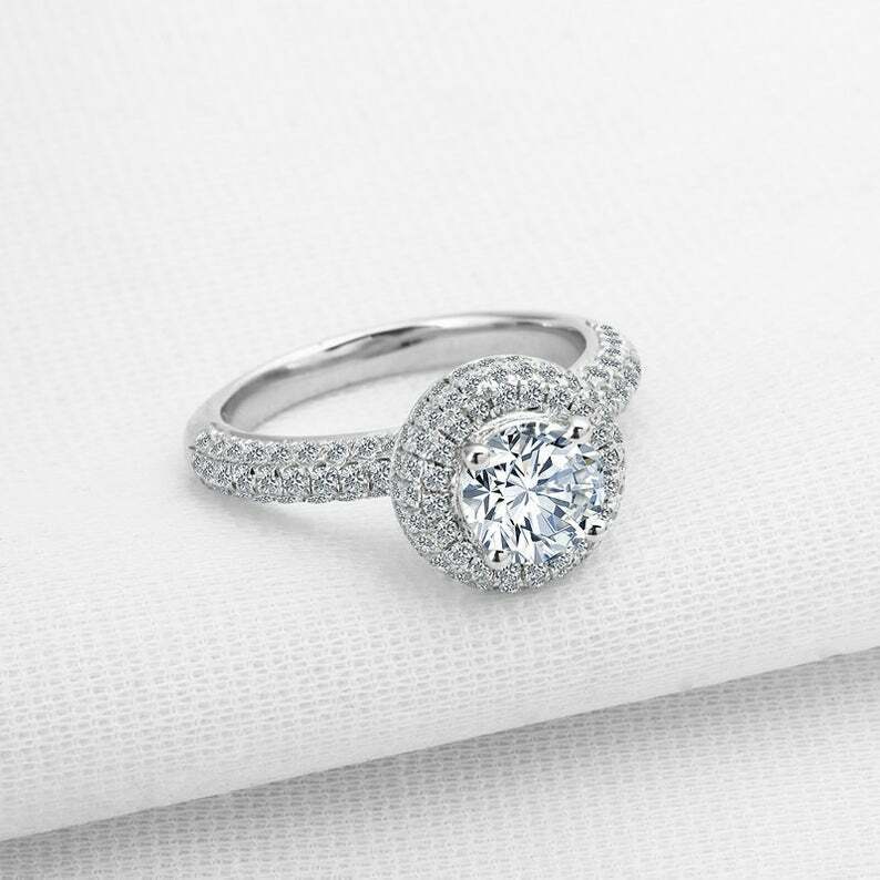 2ct Round Cut Diamond Accent Double Halo Engagement Ring 14k White Gold Finish