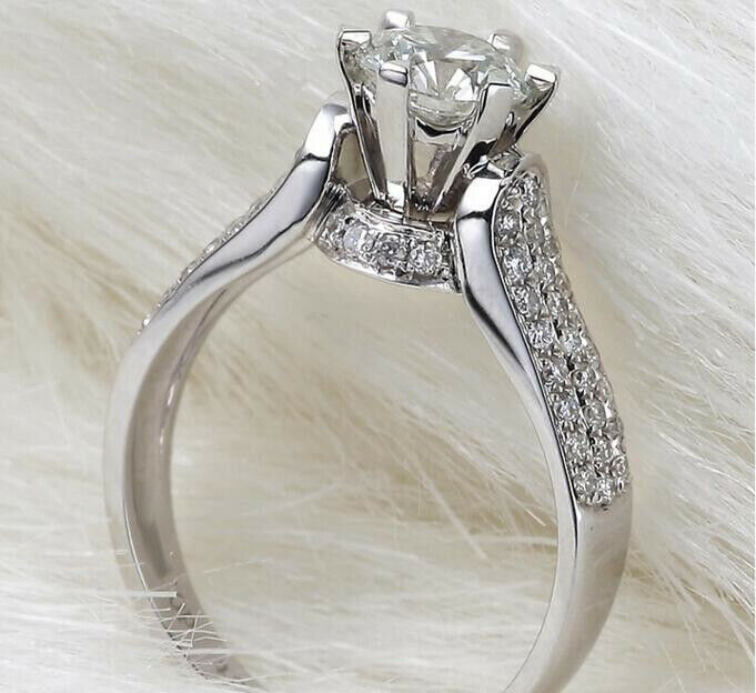 2Ct Round Cut Diamond Accent Hidden Halo Engagement Ring 14K White Gold Finish