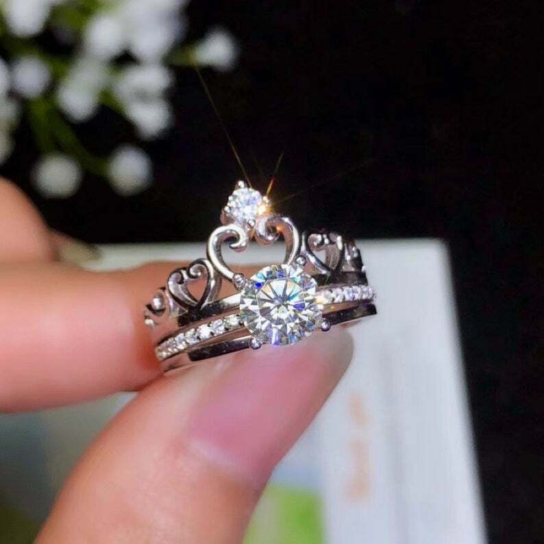 2ct Round Cut Diamond Bridal Set Crown Engagement Ring Guard 14k White Gold Over