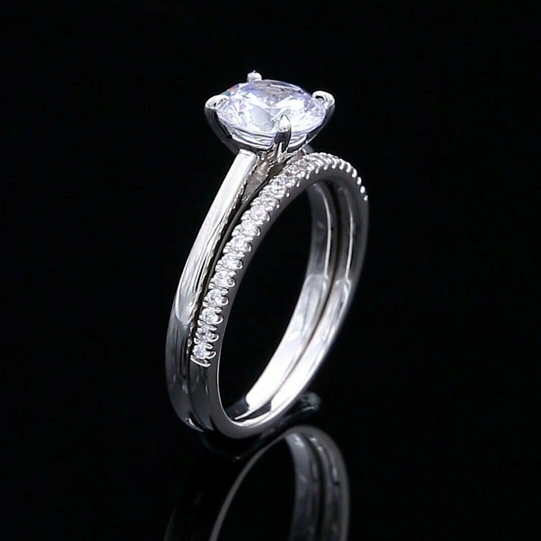 2Ct Round Cut Diamond Classic Bridal Set Engagement Ring 14K White Gold Finish