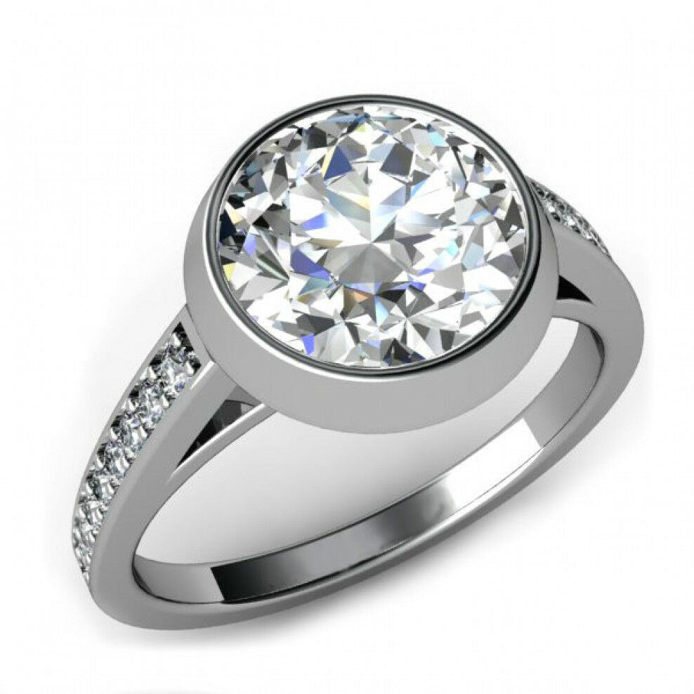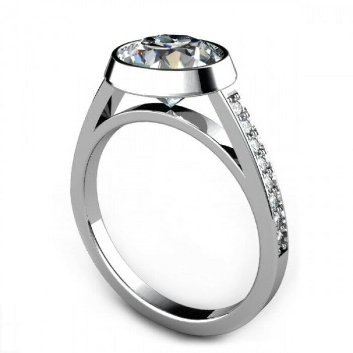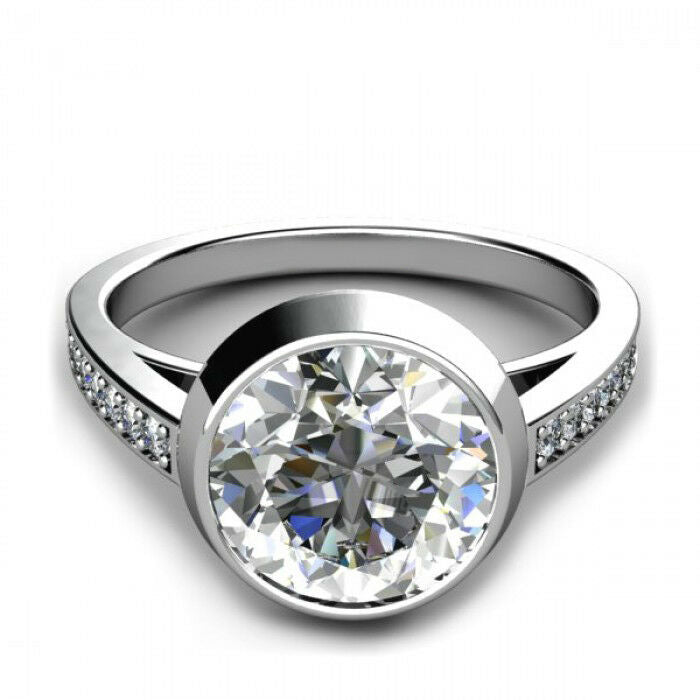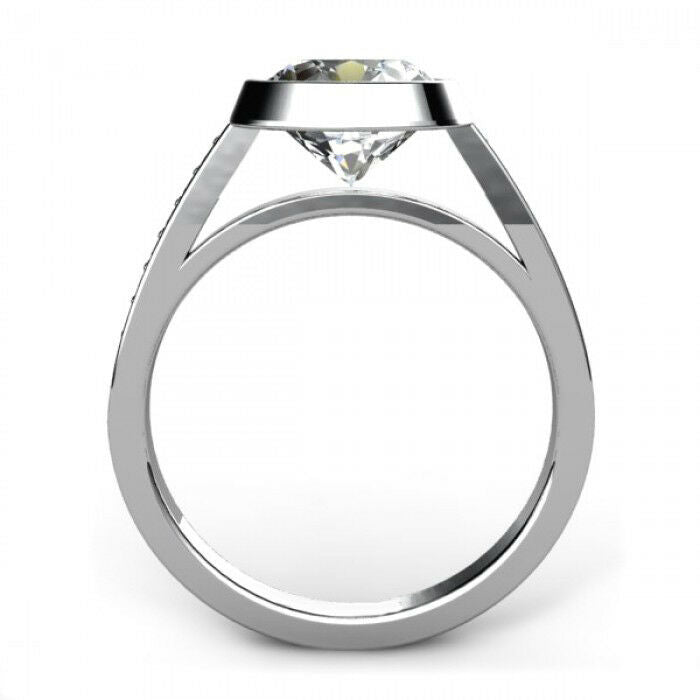 2ct Round Cut Diamond Cool Bezel Solitaire Engagement Ring 14k White Gold Finish