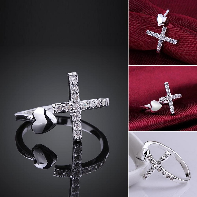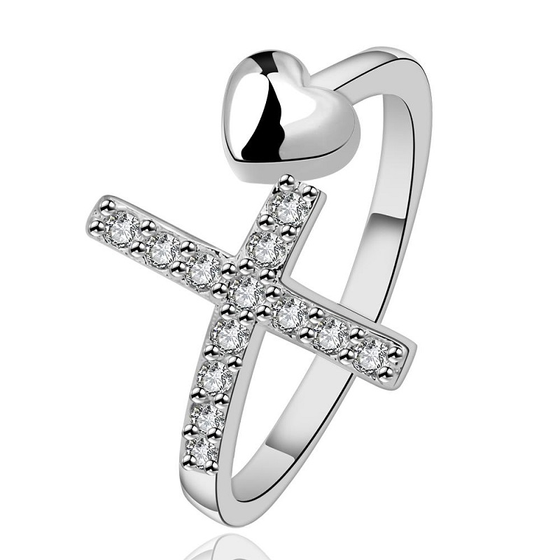 2Ct Round Cut Diamond Cross Heart Promise Statement Ring 14K White Gold Finish