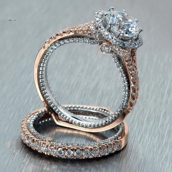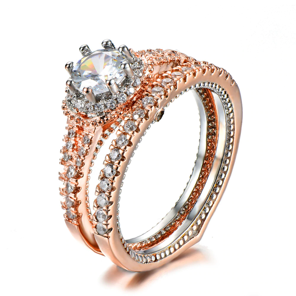 2ct Round Cut Diamond Engagement Ring 14k Dual Tone Finish Milgrain Bridal Set