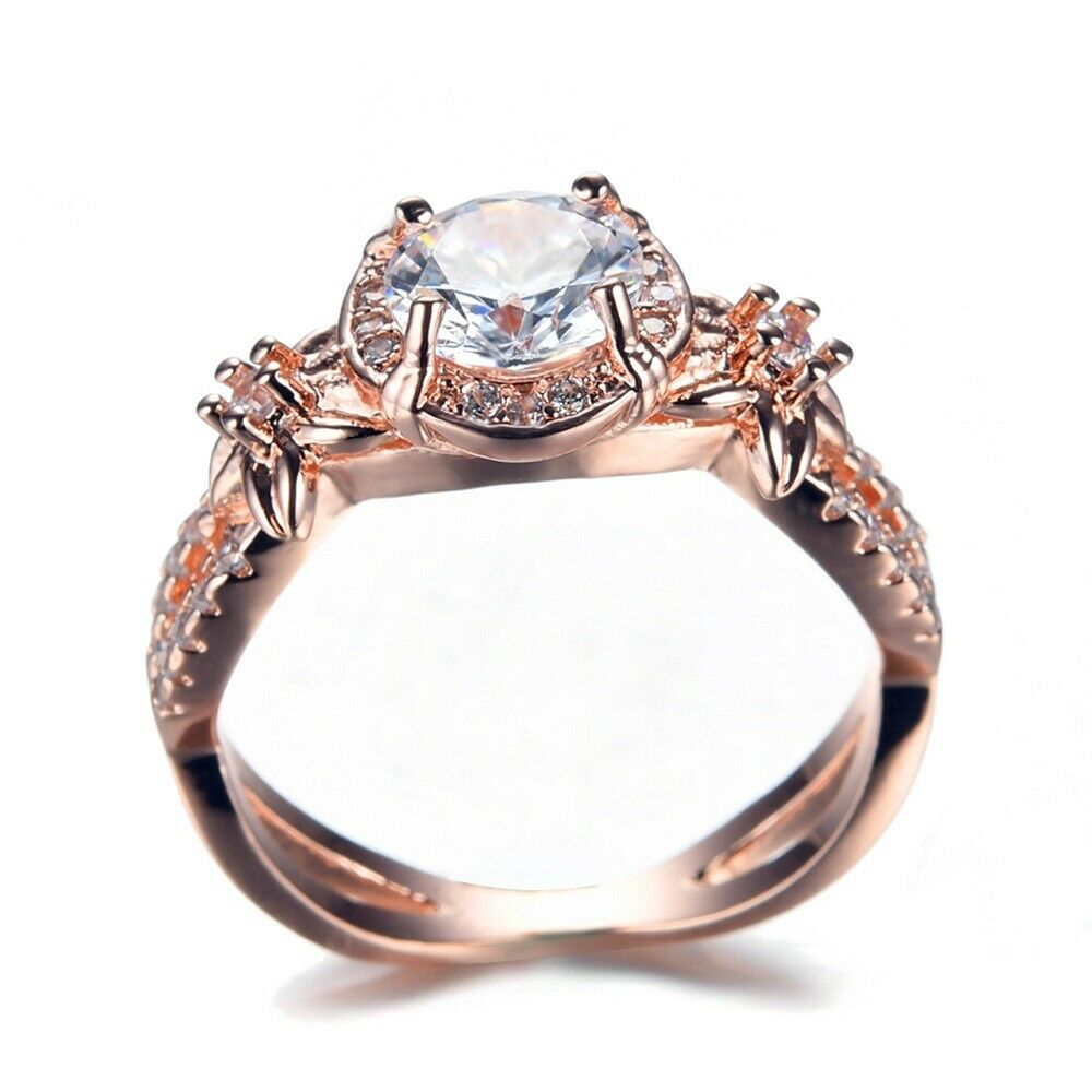 2ct Round Cut Diamond Engagement Ring 14k Rose Gold Finish Halo Infinity Floral