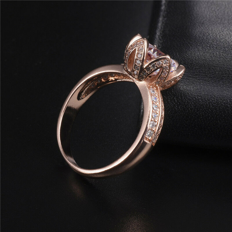 2ct Round Cut Diamond Engagement Ring 14k Rose Gold Finish Lotus Flower Design
